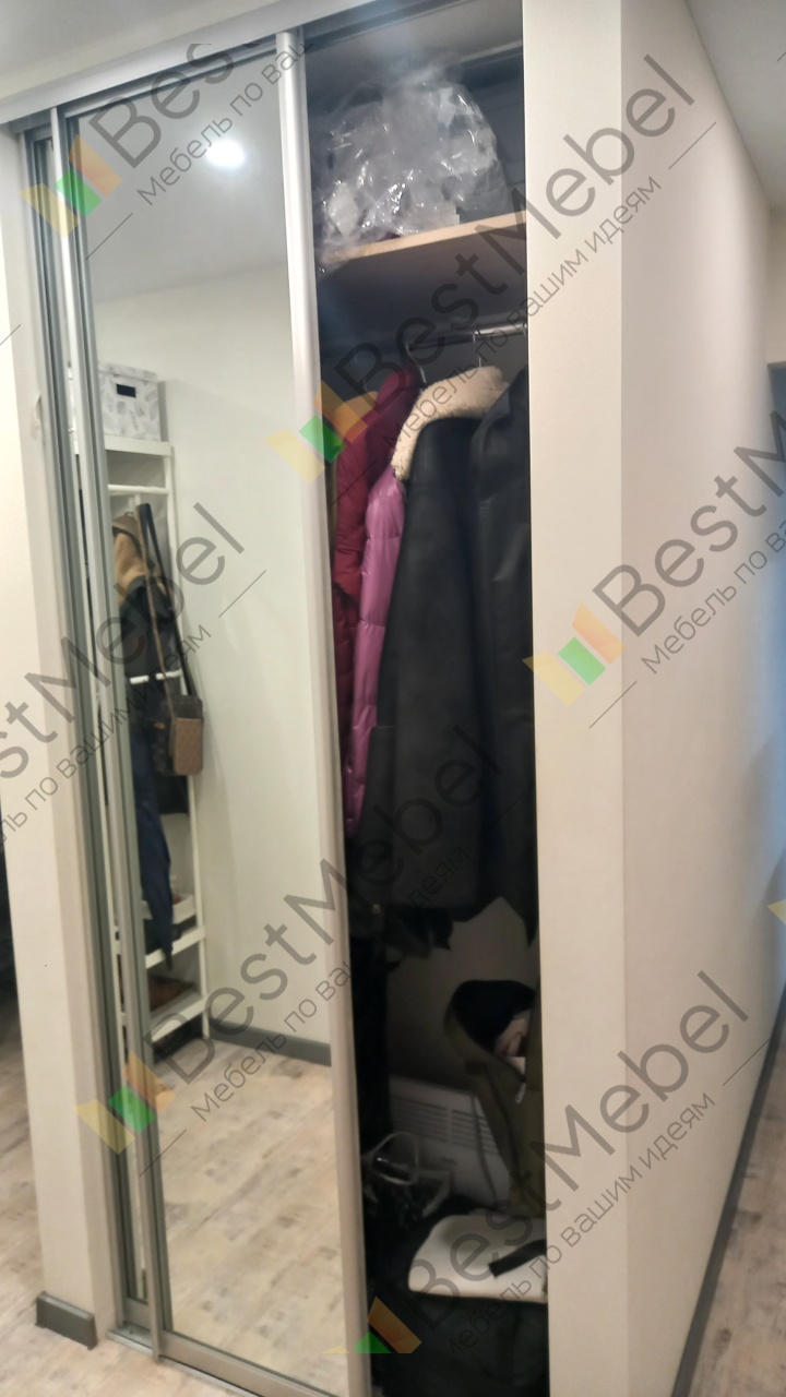 Заказ 00000531079, изделие Двери-купе Глейз 1 BMS (1000х2400х34)Шкаф делали сами по своим размерам, заполняя имеющийся угол. Надо было подобрать двери, чтобы идеально вписались в заданный проем, и чтобы было бюджетно. Все получилось: Двери-купе Глейз 1 BMS отличные, по размерам все идеально получилось подобрать. Наверно, только этот продавец и предлагает такую гибкую размерную сетку по приемлемым ценам. Сами двери добротные.