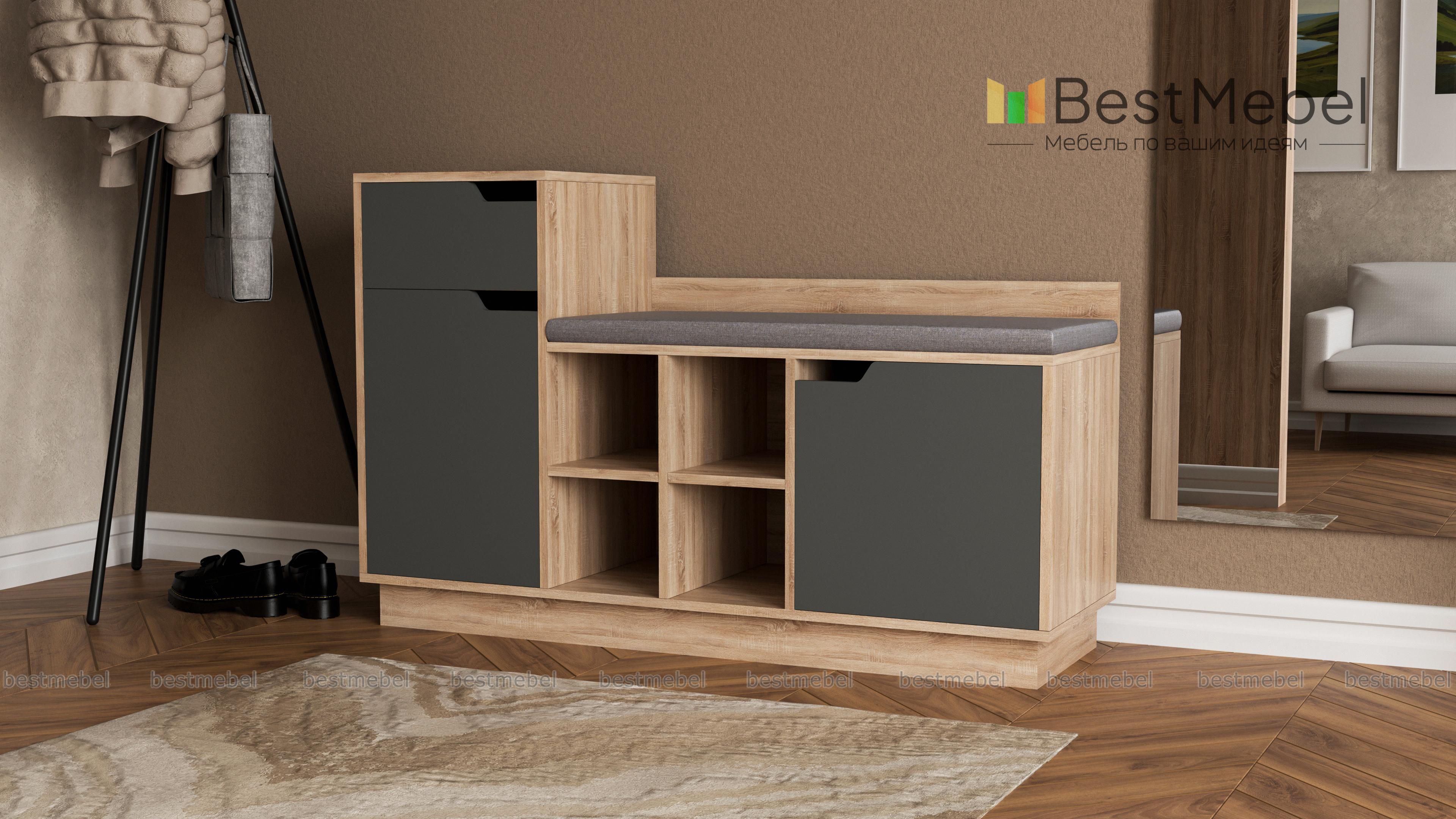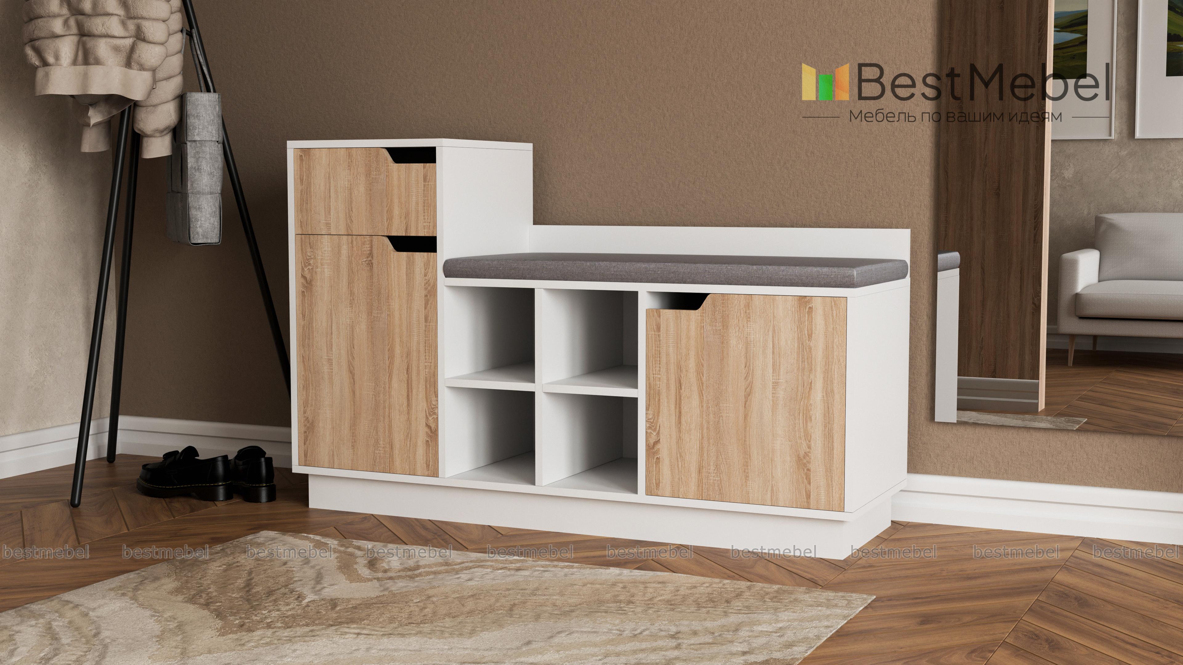 Обувница Лидер 1 BMS отличается необходимой современному интерьеру функциональностью. Комбинированная модель оборудована открытыми полками для повседневной обуви, секцией с глухой дверцей, тумбой с выдвижным ящиком и распашным отделением для хранения аксессуаров и средств по уходу. Комфортным обувание сделает широкое сиденье с мягкой обивкой в ткани. Теплые древесные тона универсальны и сделают интерьер прихожей уютнее. Купить обувницу Лидер 1 BMS по выгодной цене приглашаем к нам в интернет-магазин.