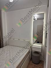 Удобное изголовье с полками - подойдёт, если у вас нет места для тумбы.Стандартная кромка очень хрупкая, будьте аккуратнее, когда собираете (я случайно задел изголовье во время крепежа зеркала рядом с кроватью, повредил край кромки).Инструкция на одном листе в очень плохом качестве, пришлось запрашивать по почте подробную инструкцию.