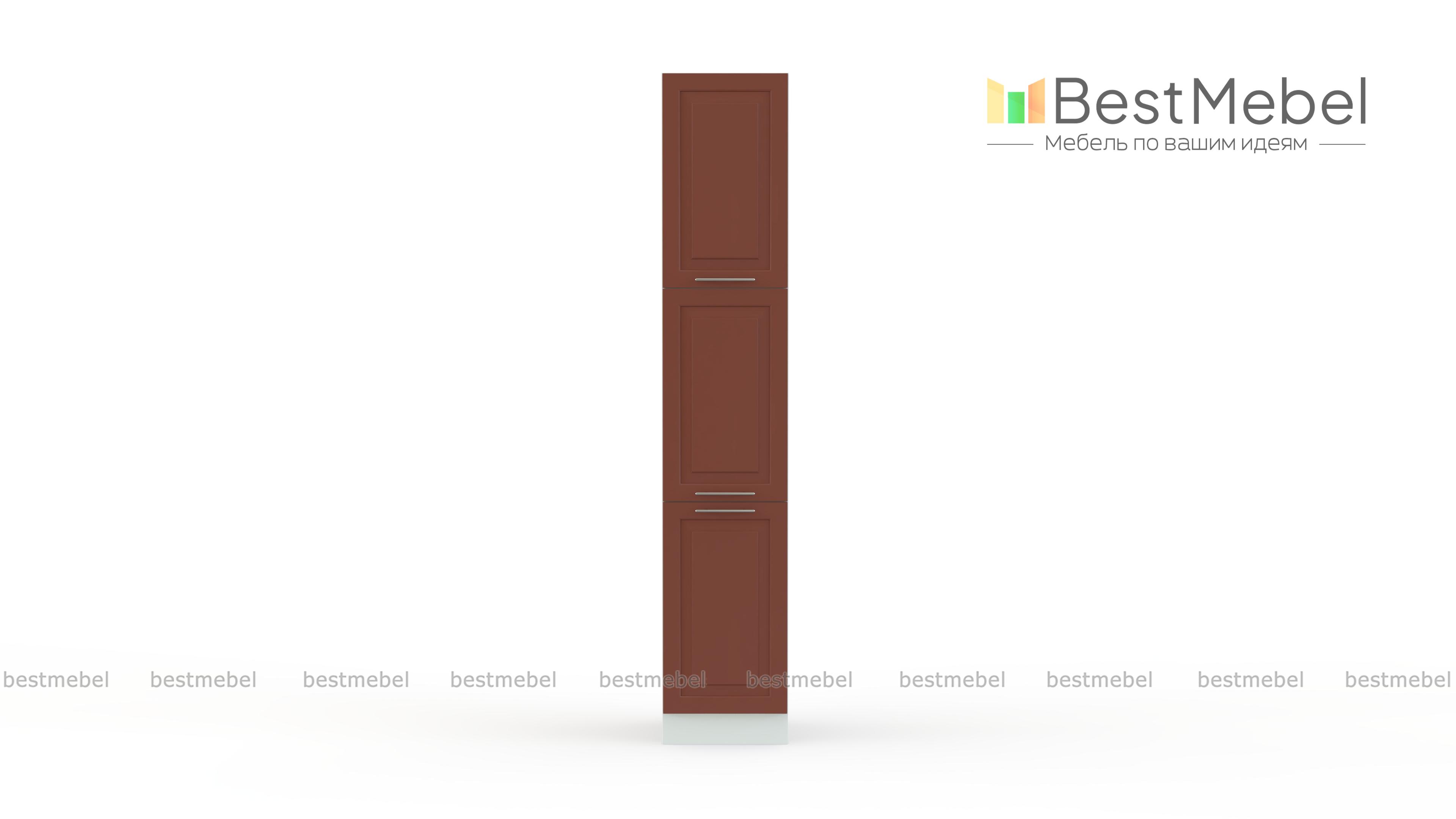 Шкаф-пенал трехдверный Ирен BMS отличается компактными размерами, вместительностью за счет высоты, и гармонично впишется даже в небольшие помещения. Модель выполнена в классическом стиле и оборудована тремя распашными отделениями с полками, которые помогут разместить как нескоропортящиеся продукты, так и габаритную кухонную утварь. Рамочные фасады терракотовых тонов с ручками-скобами дополнят ряд из других модулей серии. Купить шкаф-пенал трехдверный Ирен BMS приглашаем в наш интернет-магазин.