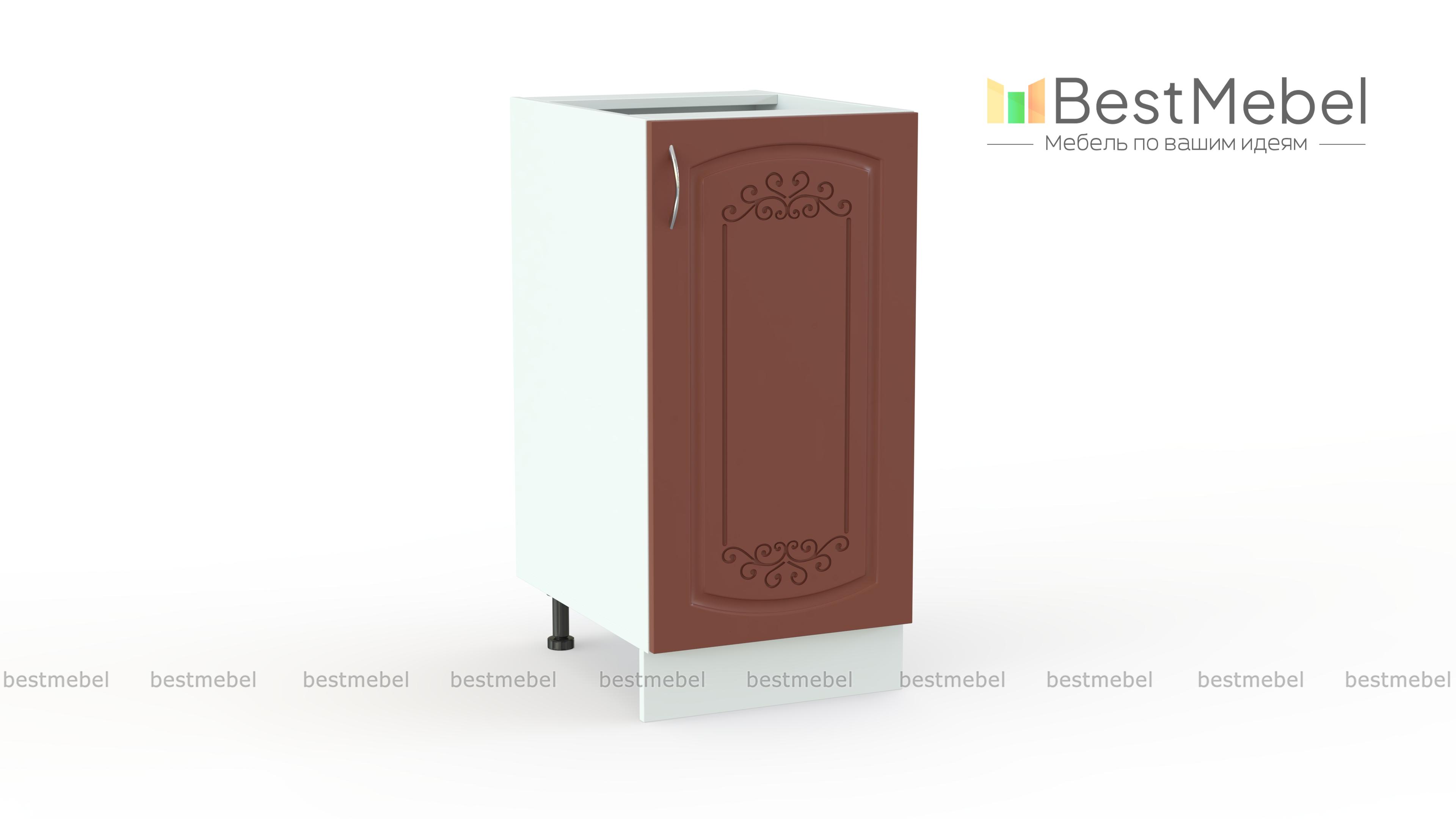 Стол кухонный 1 дверь Глория BMS придется по душе тем, кто ценит эффектный декор и надежность конструкции классической мебели. Компактная тумба дополнит нижний ряд модульного комплекта и легко разместит необходимые продукты и посуду в распашном отделении с полкой. Украшенный фрезерованным рисунком фасад терракотовых тонов смотрится в домашнем интерьере особенно уютно. Купить стол кухонный 1 дверь Глория BMS по отличной цене вы сможете в нашем интернет-магазине.