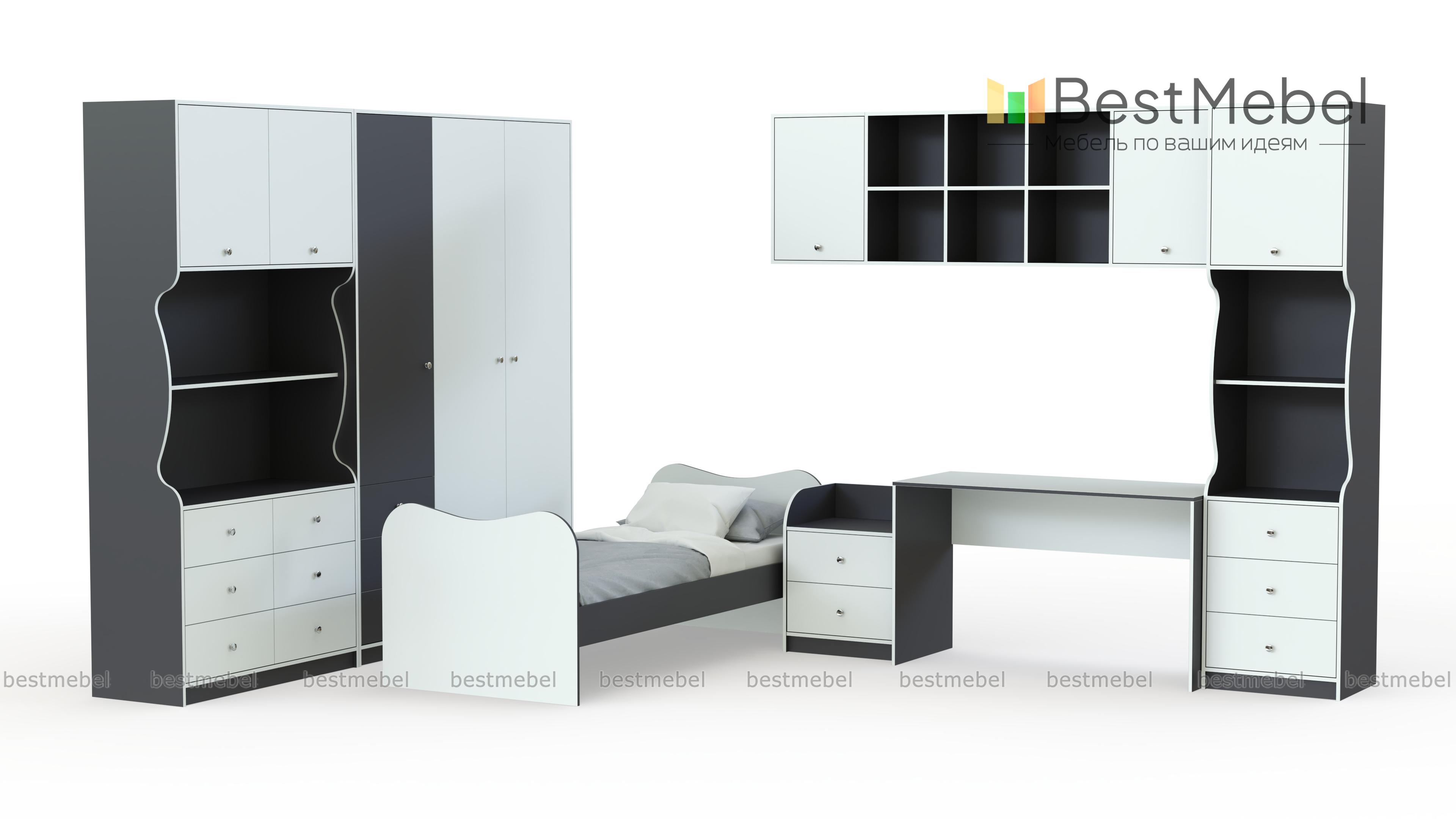 Детская модульная система Кирилл-2.2 BMS поможет полностью обустроить уютную комнату в современном стиле. Композиция из отдельных элементов максимально органично впишется в интерьер, выгодно используя особенности планировки. В комплект входят платяной распашной шкаф, комбинированные книжные шкафы, письменный стол, навесная полка, кровать с фигурно вырезанными спинками и прикроватная тумба. Купить детскую модульную систему Кирилл-2.2 BMS, подобрав расцветку для комнаты мальчика или девочки, вы сможете в нашем интернет-магазине.