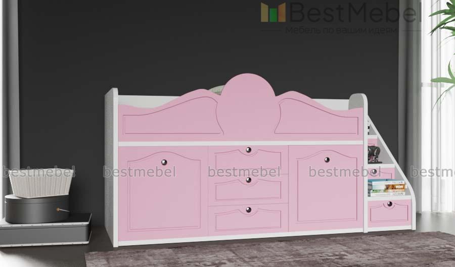 Кровать-чердак Стриж-1 BMS выполнена в классическом стиле и украшена по фасаду фрезеровкой. Элегантная композиция в нежных светлых тонах станет прекрасным выбором для спальни девочки. На втором ярусе располагается уютное спальное место с фигурно вырезанным бортиком, а на первом – лестница-комод, выдвижные ящики и шкафчик для одежды и постельного белья, а также скрытый в нише выкатной столик. Купить кровать-чердак Стриж-1 BMS и эффективно использовать пространство вам поможет наш интернет-магазин.