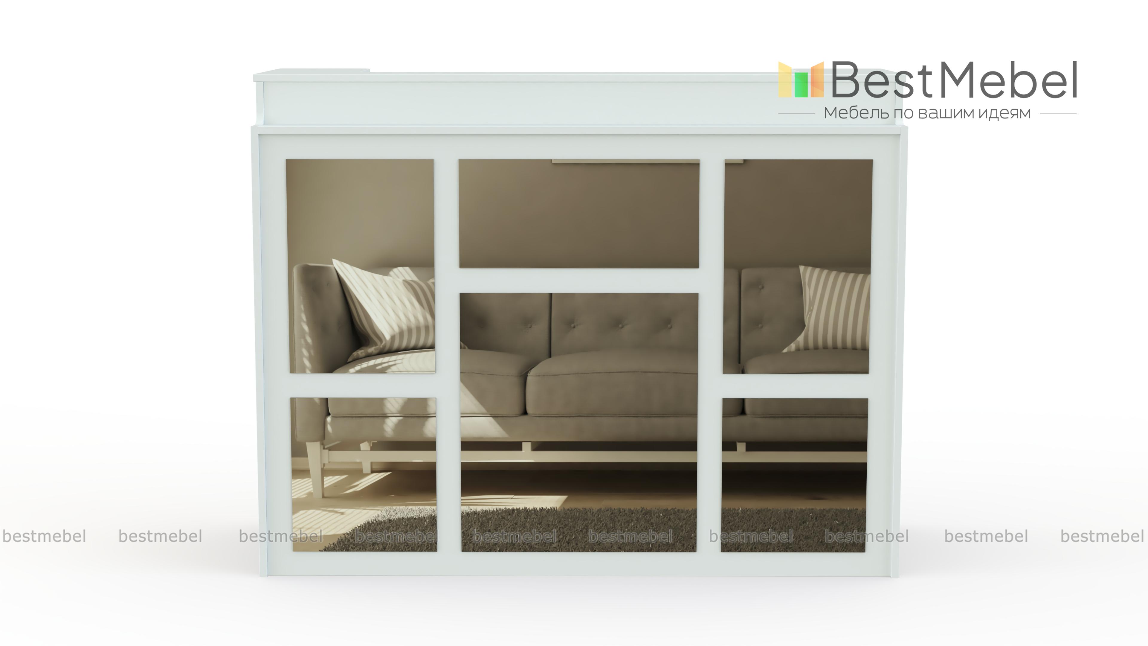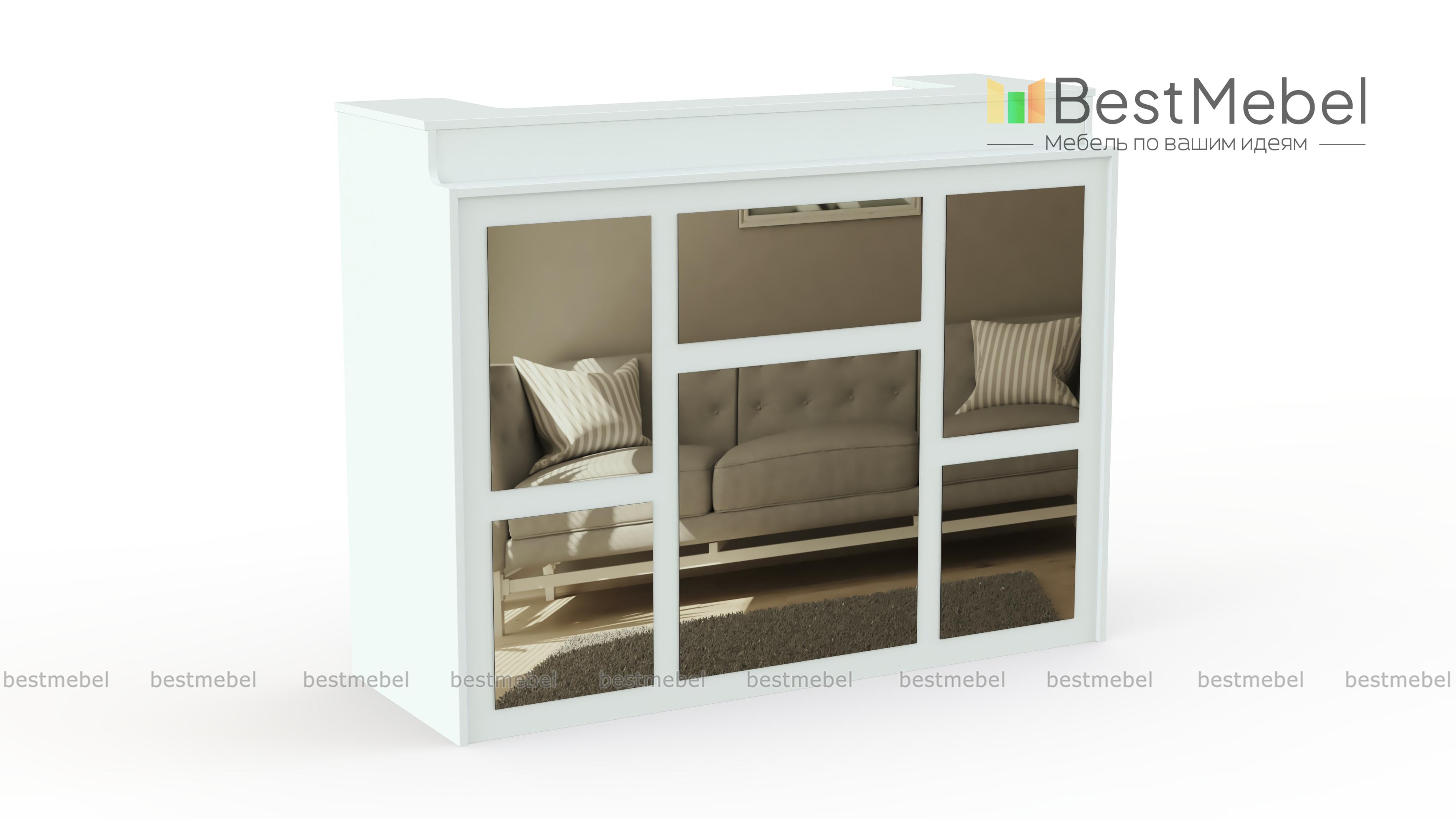 Стойка ресепшен № 35Б BMS отличается компактными размерами и оригинальным современным дизайном, который удачно дополнит интерьер небольшой приемной, холла или салона. Геометричный декор зеркальными накладками сделает помещение визуально просторнее, а светлые оттенки традиционно производят впечатление респектабельности. Для удобства посетителей стойка дополнена полочкой, для администратора предусмотрена широкая внутренняя столешница. Купить стойку ресепшен № 35Б BMS вы сможете в нашем интернет-магазине с подбором необходимых параметров.