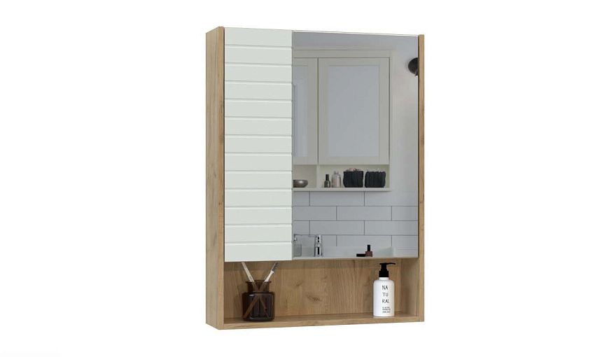 Зеркало Восток 1 BMS – это актуальный дизайн с элементами стиля хай-тек и удобные средние габариты. Лаконичная подвесная модель оборудована двухдверным распашным отделением с полочками для хранения уходовых средств и нишей для мелочей в нижней части. Корпус в нейтральных древесных тонах гармонично сочетается с белым фасадом, декорированным горизонтальной фрезеровкой. Купить зеркало Восток 1 BMS для современной ванной комнаты приглашаем в наш интернет-магазин.