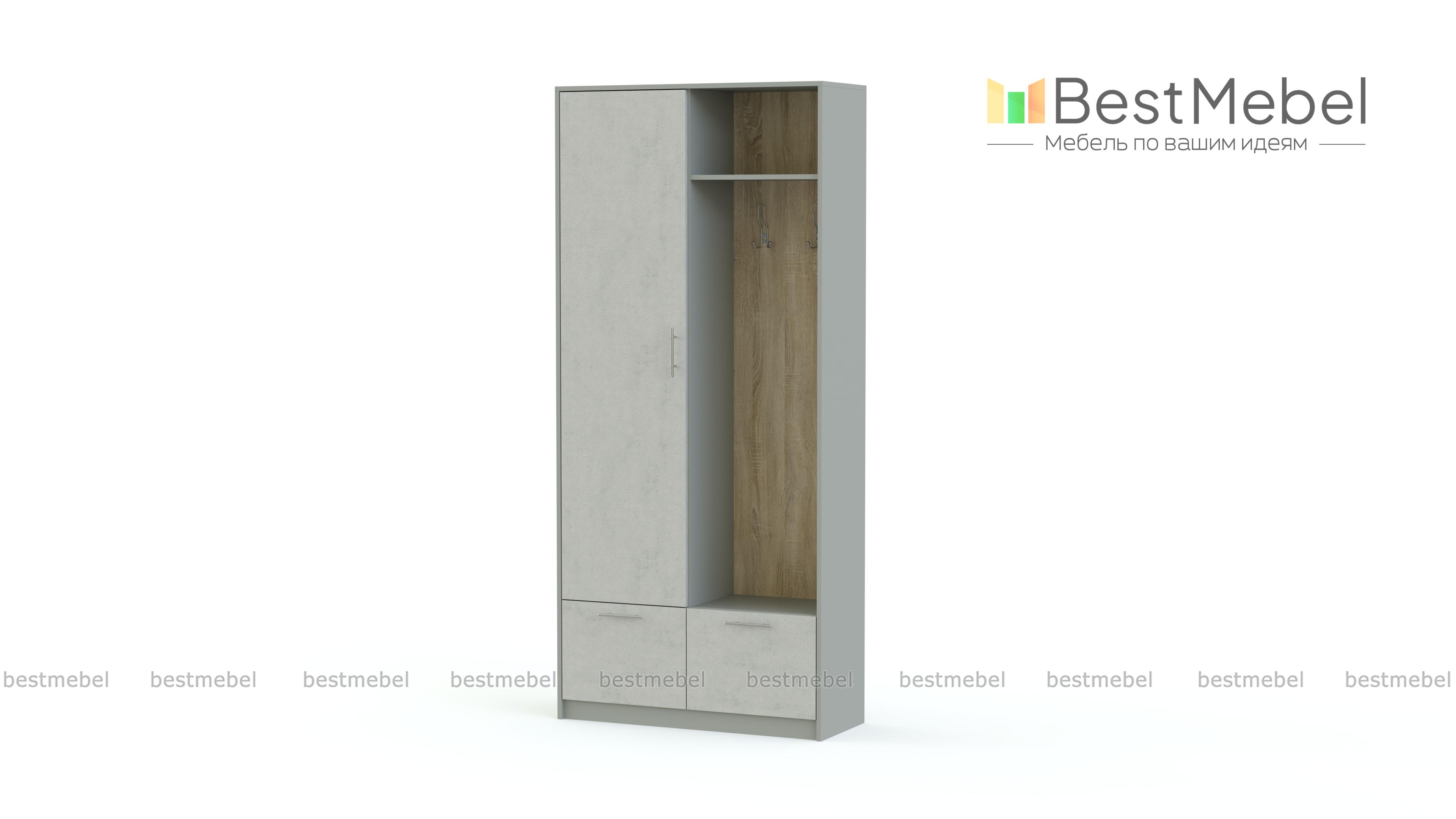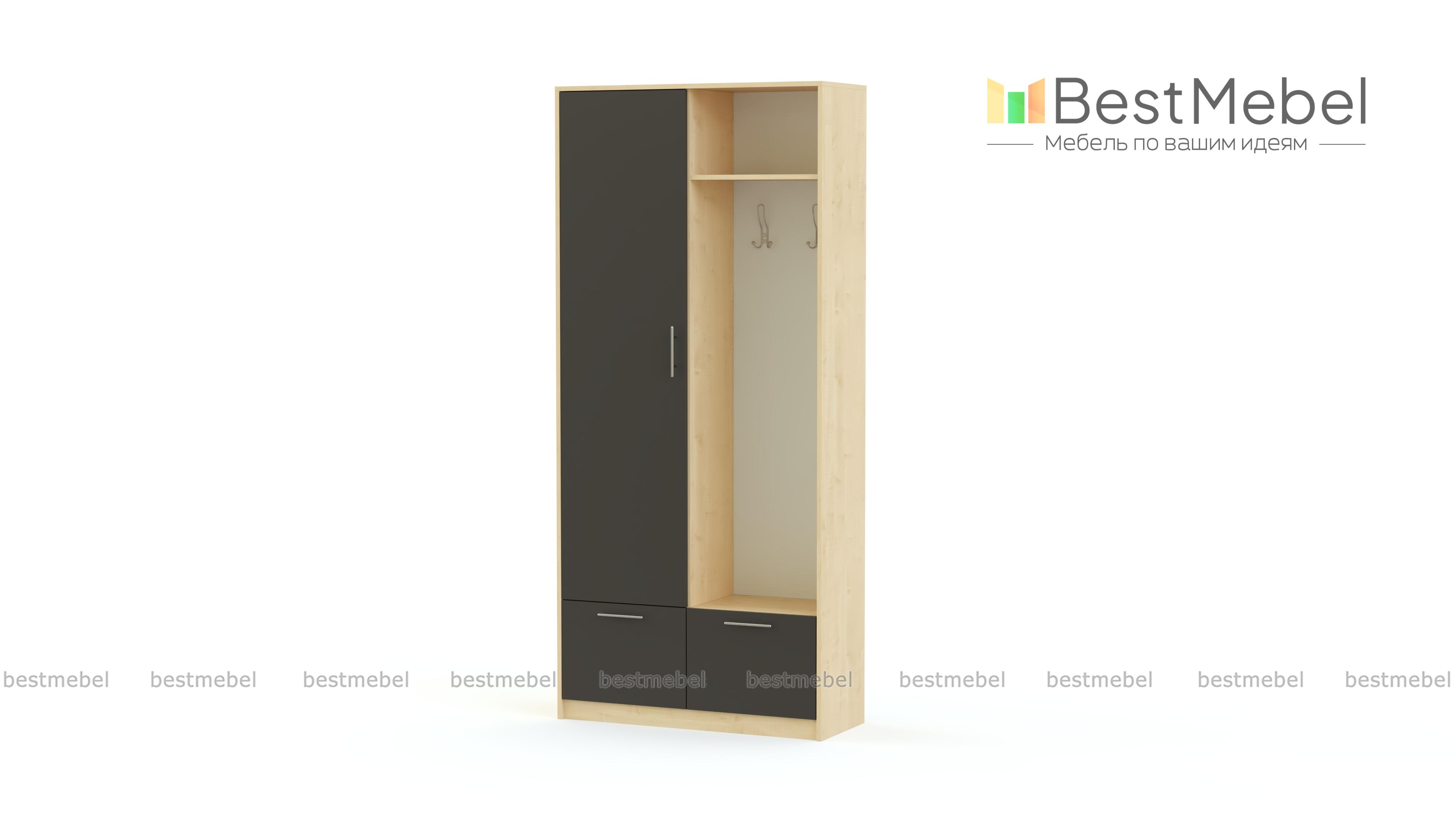 Стенка-прихожая «Идеал 1» BMS – идеальное решение для малогабаритного современного помещения. Миниатюрная стенка без труда впишется в интерьер благодаря прямой конструкции и возможности выбора цветовой гаммы. В комплекте бельевой шкаф, тумба, панель с двумя крючками для одежды и полка для головных уборов. Корпус темного оттенка сочетается со светлыми фасадами и оригинальной контрастной древесной панелью. Купить стенку-прихожую «Идеал 1» BMS по доступной цене вы сможете в нашем интернет-магазине.