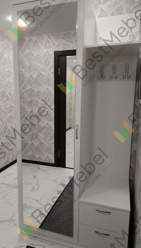Купили дешевле. За 5200 руб. Очень хорошая прихожая. Ничего лишнего. Но в сборке есть неточности в расстояниях приготовленных дырок.