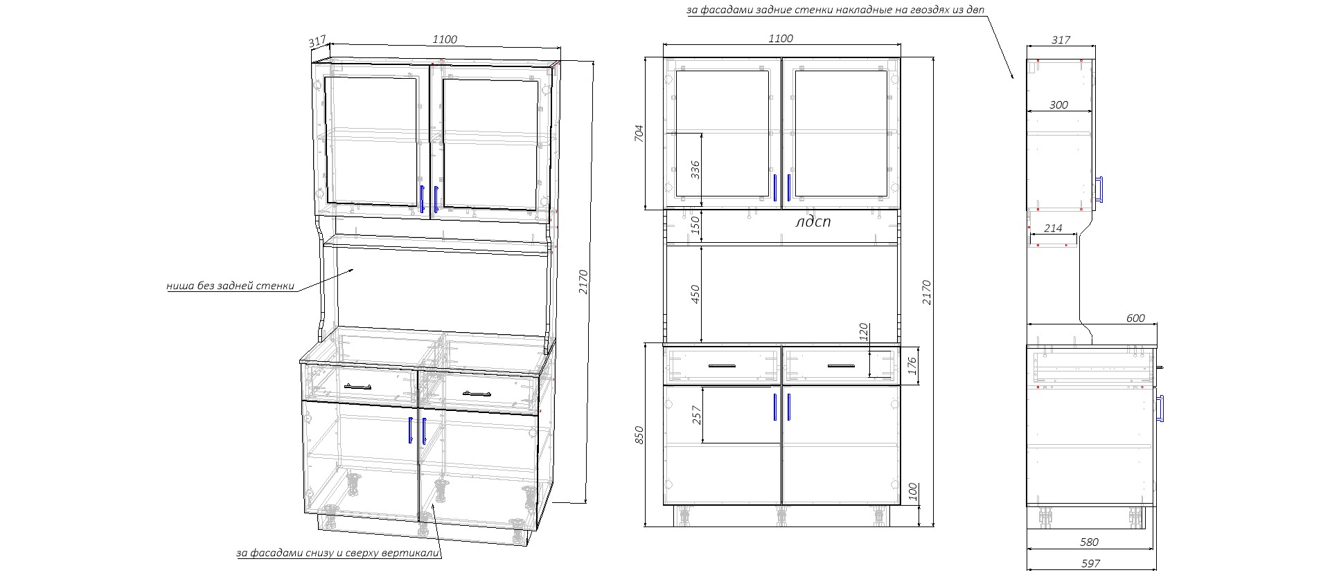Буфет Романс BMS – классическая модель, которая станет частью меблировки уютной кухни. Буфет отличается визуальной легкостью, компактными размерами и вместительностью. В нижней части располагается тумба с распашным отделением и выдвижными ящикоми с доводчиком для мелочей, в верхней – витрина с декоративной решеткой, а центральную часть занимают просторные ниши для бытовой техники, дверки также с доводчиком.