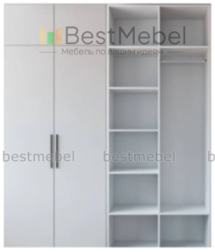 Распашной шкаф Вилета 5 - это классический двухдверный гардероб, особенную вместительность которому придает просторная антресоль. Основное отделение оборудовано как металлической штангой, так и полками. Распашные створки, оснащенные стильными скобами, обеспечивают отличный обзор содержимому внутренних отделений. Купить шкаф вы сможете в нашем интернет-магазине от производителя BestMebelShop!