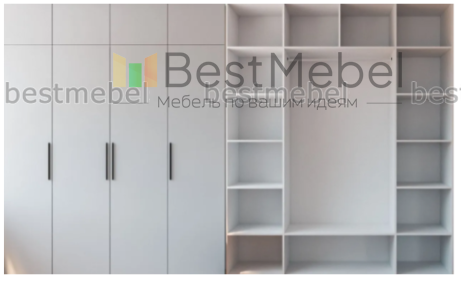 Шкаф распашной отличается минималистичным дизайном и хорошей вместительностью. Гардеробное отделение со штангой в центре, дополнено распашными антресолями и расположенными по бокам бельевыми пеналами. Лаконичный силуэт и отсутствие лишних деталей делают модель по-настоящему универсальной. Купить шкаф для хранения предметов гардероба и домашнего текстиля вы сможете на сайте нашего интернет-магазина от производителя BestMebelShop!