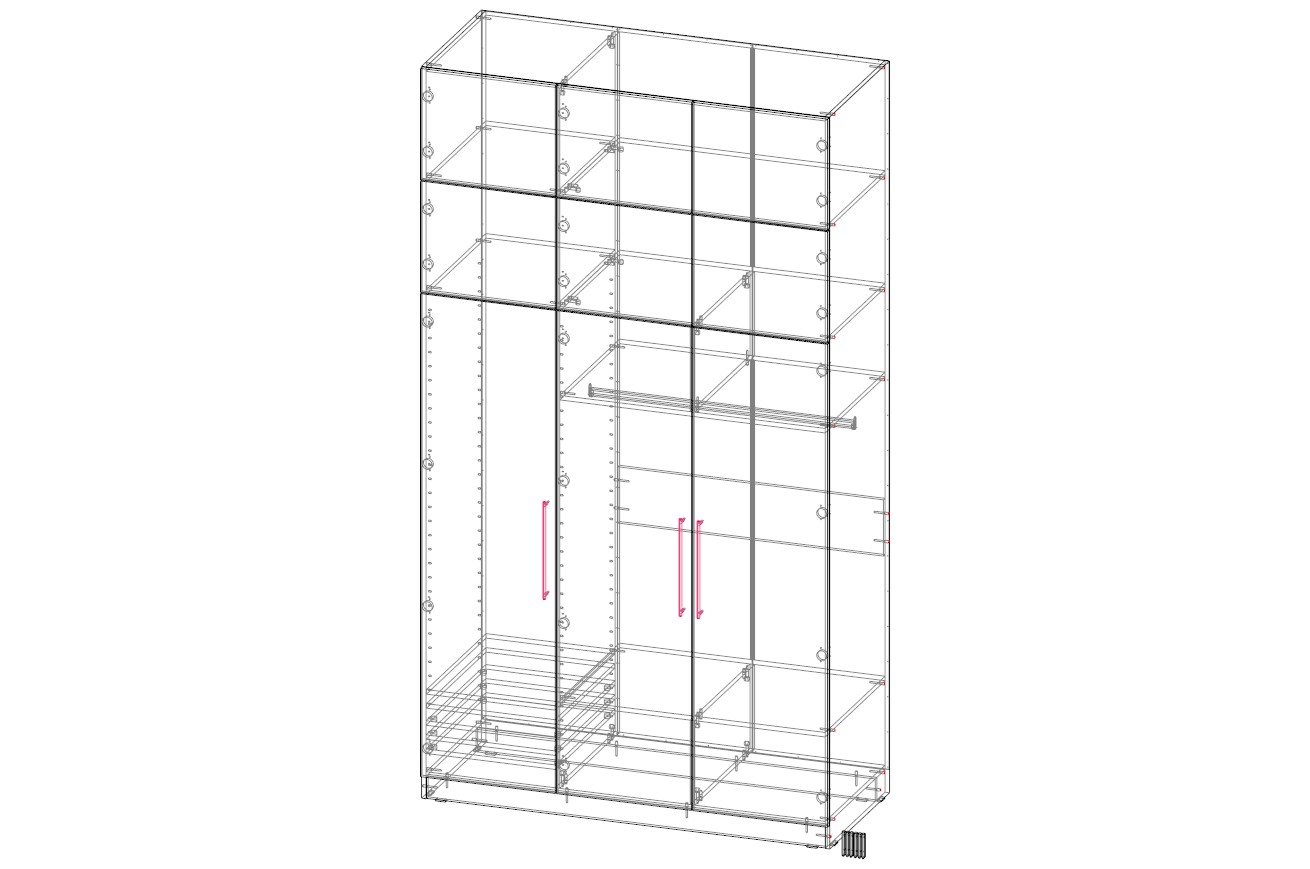 Шкаф распашной Остин Нео 9 BMS оборудован платяным отделением, бельевой секцией слева и двумя рядами антресолей. Благодаря минималистичному исполнению модель универсальна и подходит для самых разных стилевых решений. Особенность конструкции шкафа - в наличии перфорации на боковых стенках, которая дает возможность отрегулировать высоту полок по своему вкусу и разместить габаритные вещи. Купить шкаф распашной Остин Нео 9 BMS с учетом необходимых размеров вы сможете в нашем интернет-магазине.
