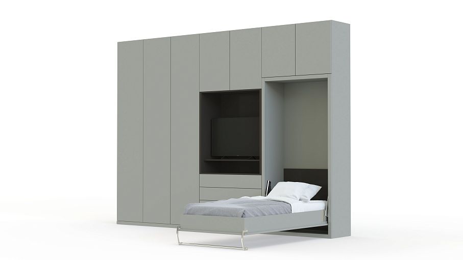 Мы не рекомендуем покупать пружинные матрасы к шкафу-кровати. Стоит отдавать предпочтение беспружинным изделиям. Это связано с тем, что поведение пружин в вертикальном положении матраса невозможно предсказать. Матрас быстро подвергается деформации и смещению слоев. Идеальным вариантом для откидной модели будет лёгкий беспружинный матрас, основу которого составляют современные материалы, не имеющие в составе пружины.