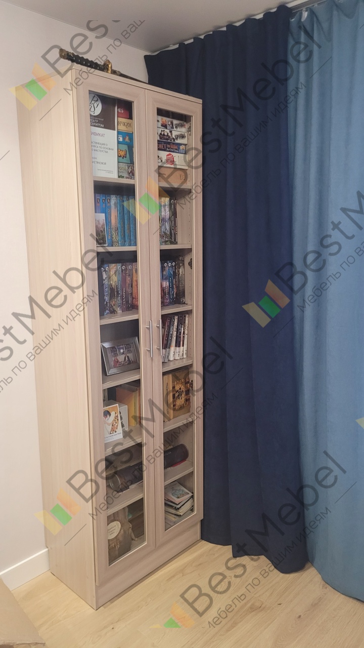 Заказ № 00000597920Такой вот шкаф данной модели, по моим параметрам, получился у меня. Очень довольна, не могу налюбоваться! Оказывается стало целой проблемой найти книжный шкаф по моим размерам и подходящий мне внешне. Но это не оказалось проблемой для вашего магазина ) спасибо