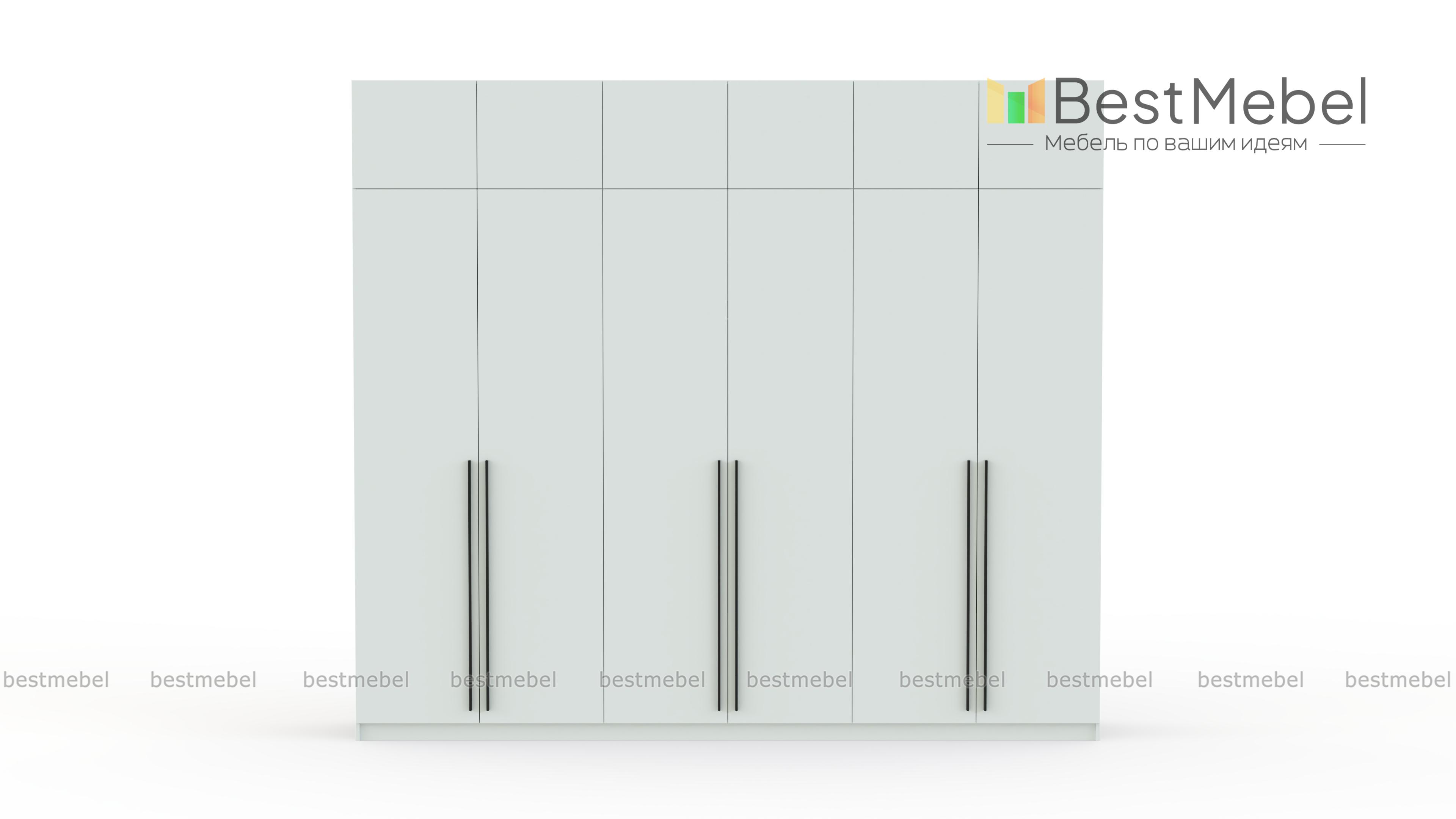 Шкаф распашной Айва 17 BMS легко вместит все необходимое благодаря трем платяным отделениям и антресоли. Шестидверная конструкция отлично вписывается в спальный интерьер и прихожие, где по максимуму задействует пространство для хранения. Элегантный современный дизайн создает сплошной светлый фасад с удлиненными ручками в качестве декора. Купить шкаф распашной Айва 17 BMS приглашаем к нам в интернет-магазин, подобрав нужные размеры, цвет и компоновку.