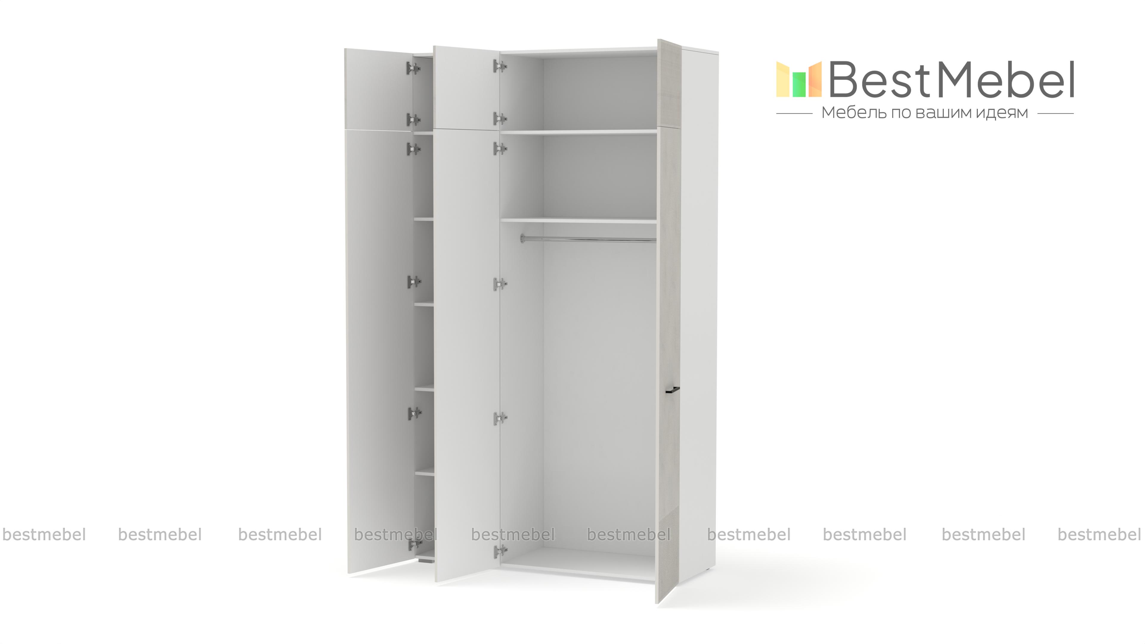 Шкаф распашной Декарт 9 BMS выполнен в современном классическом стиле. Нижняя часть фасада и дверцы антресоли украшены лаконичным стильным рельефом, в роли акцента выступают поперечные ручки-скобы. Платяное отделение справа и ряд бельевых полок слева — оптимально для хранения базового гардероба в спальне, детской комнате или прихожей. Купить шкаф распашной Декарт 9 BMS приглашаем в наш интернет-магазин с возможностью выбора габаритов, цвета и фурнитуры.