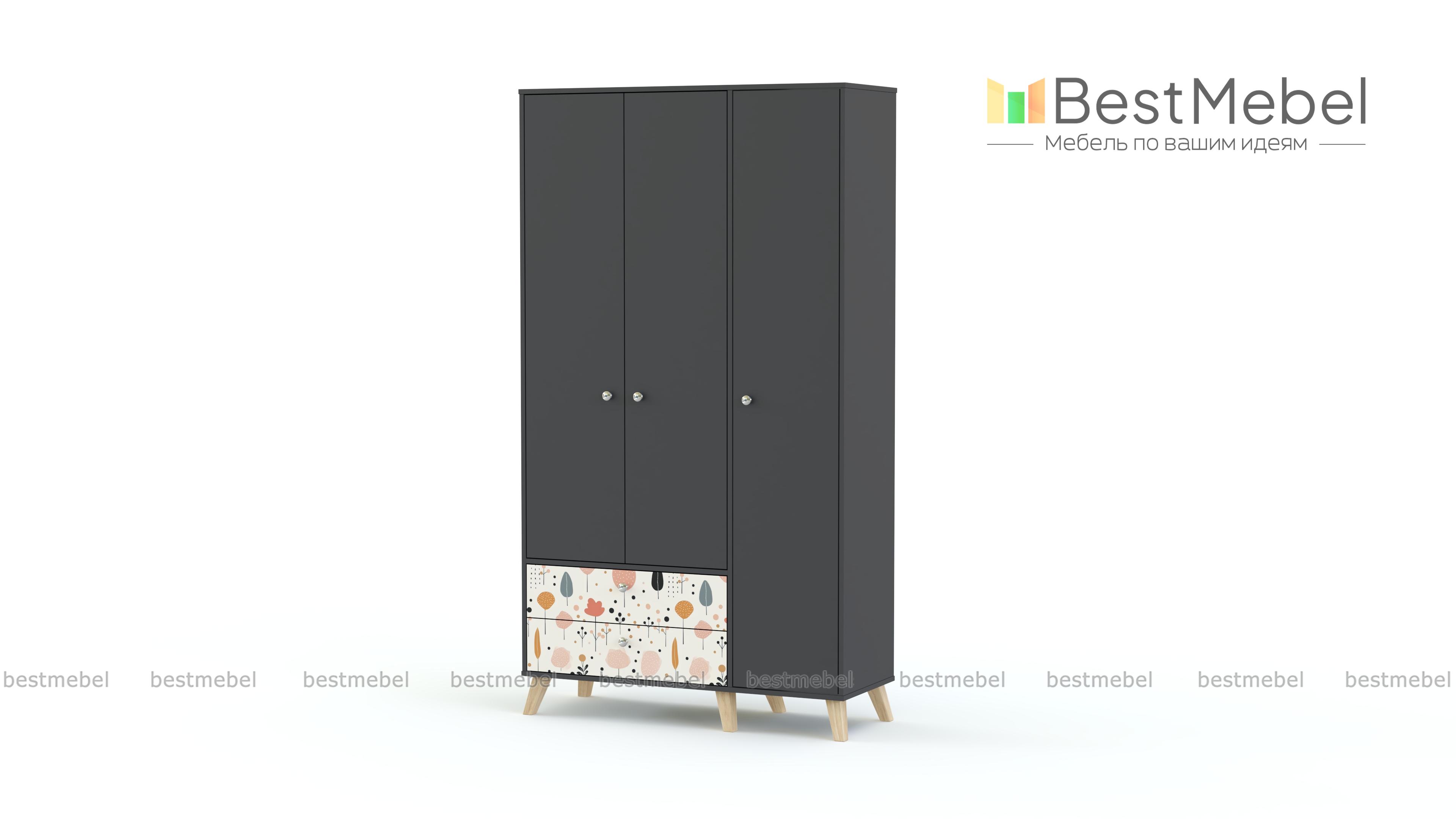 Шкаф распашной Эльза 3 BMS поможет удобно и эстетично организовать хранение в детской. Разложить вещи по местам позволят закрытые секции, укомплектованные полками и штангой, а также два просторных выдвижных ящика. Трехдверный шкаф с высокими ножками выполнен в нейтральных теплых тонах из ламинированной ДСП, для декора использован стойкий рисунок-фотопечать. Купить шкаф распашной Эльза 3 BMS вы всегда сможете в нашем интернет-магазине, по желанию изменив цвет и размеры.