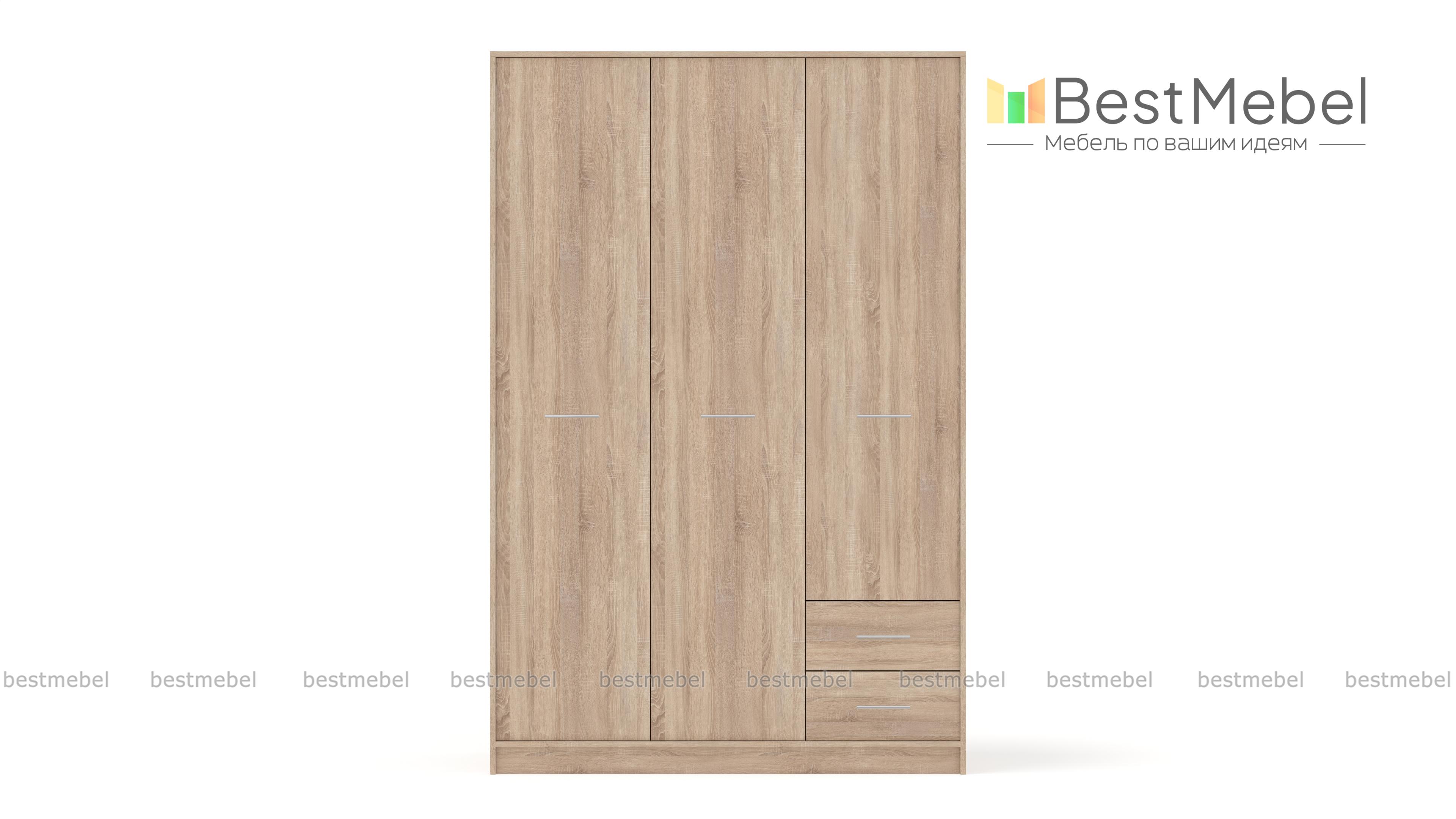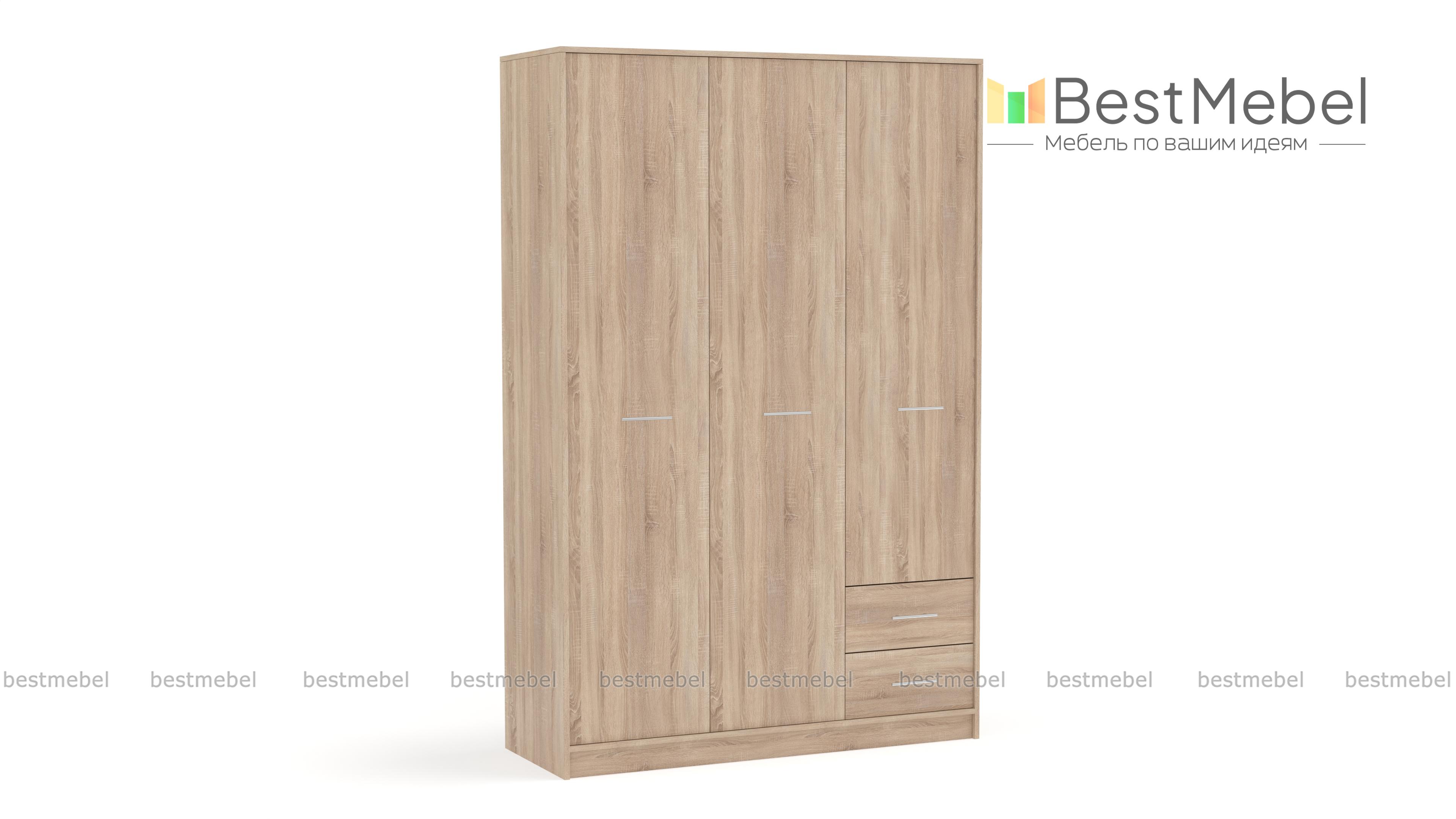 Шкаф Астарта 3 BMS – вместительная трехдверная модель универсального дизайна, который легко вписать в большинство современных интерьеров. Светлые оттенки под массив дуба будут гармонично смотреться в спальне, гостиной или прихожей. За двумя распашными дверцами располагается просторное отделение со штангой и полкой, в однодверной секции – также штанга и верхняя полка. Мелкие вещи удобно разместятся в двух выдвижных ящиках. Купить Шкаф Астарта 3 BMS, подобрав оптимальный вариант расцветки, вы сможете в нашем интернет-магазине.