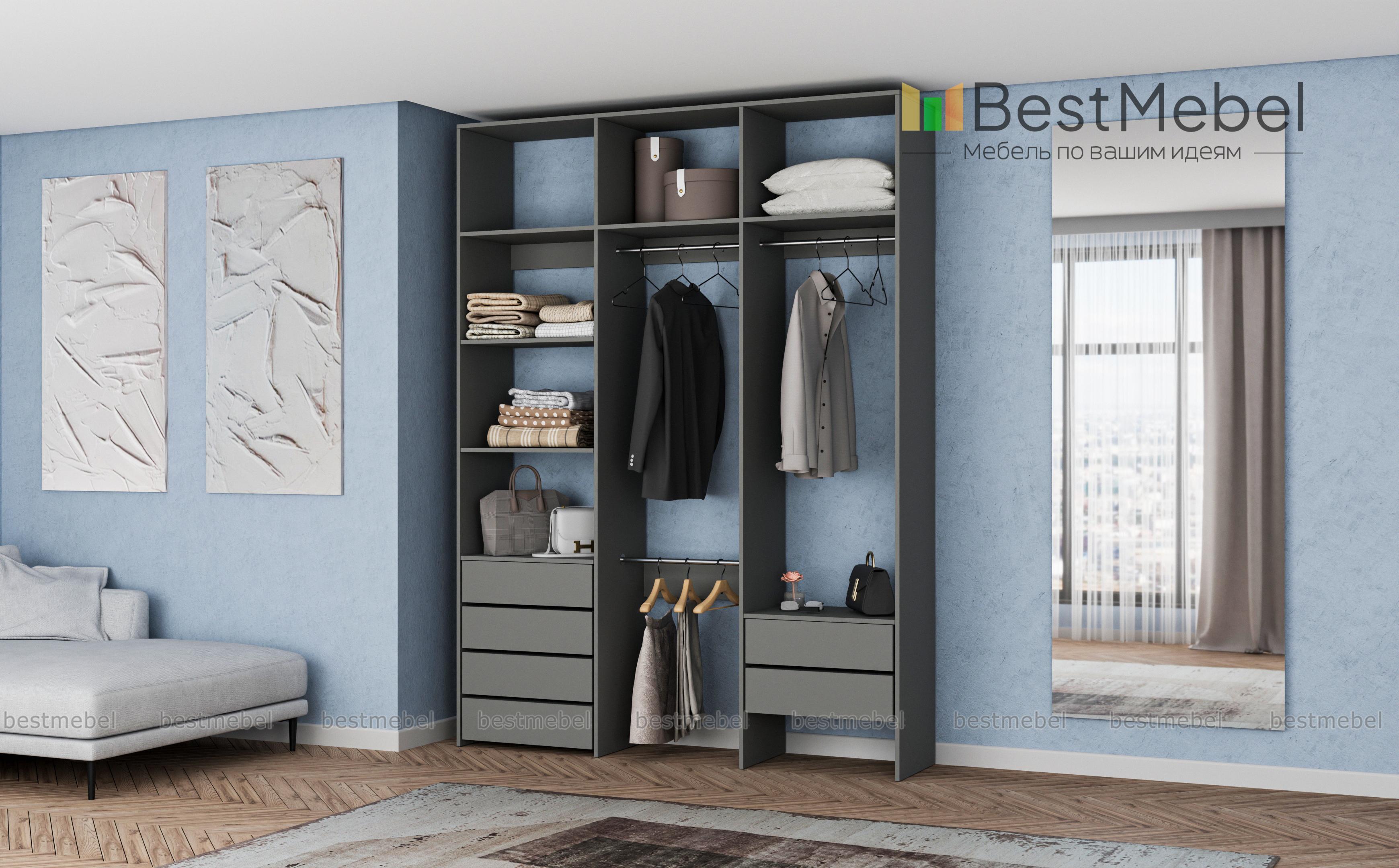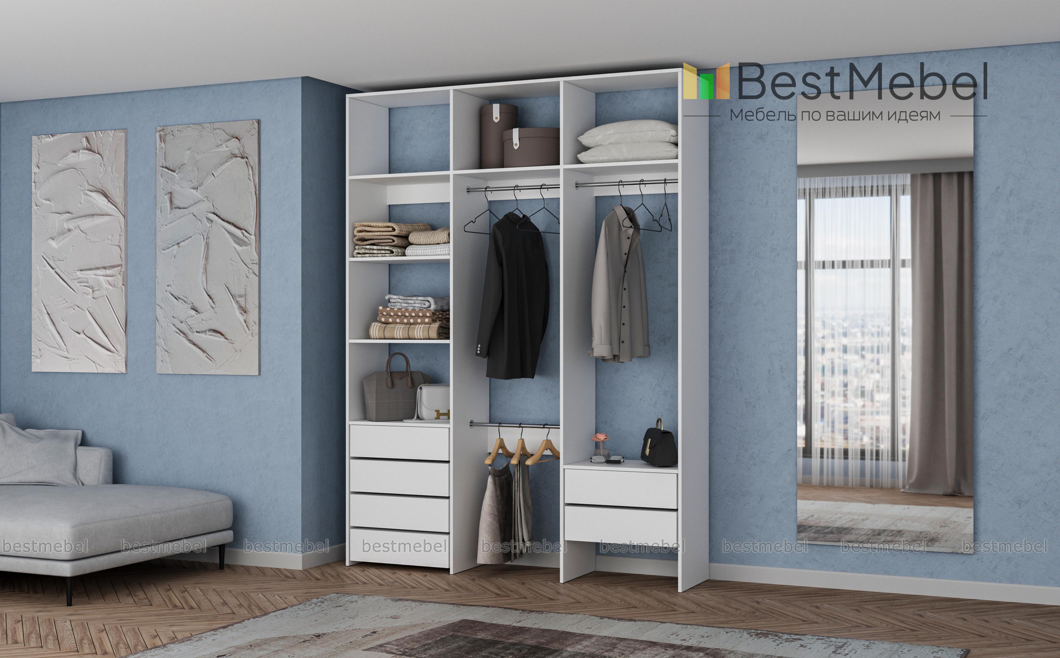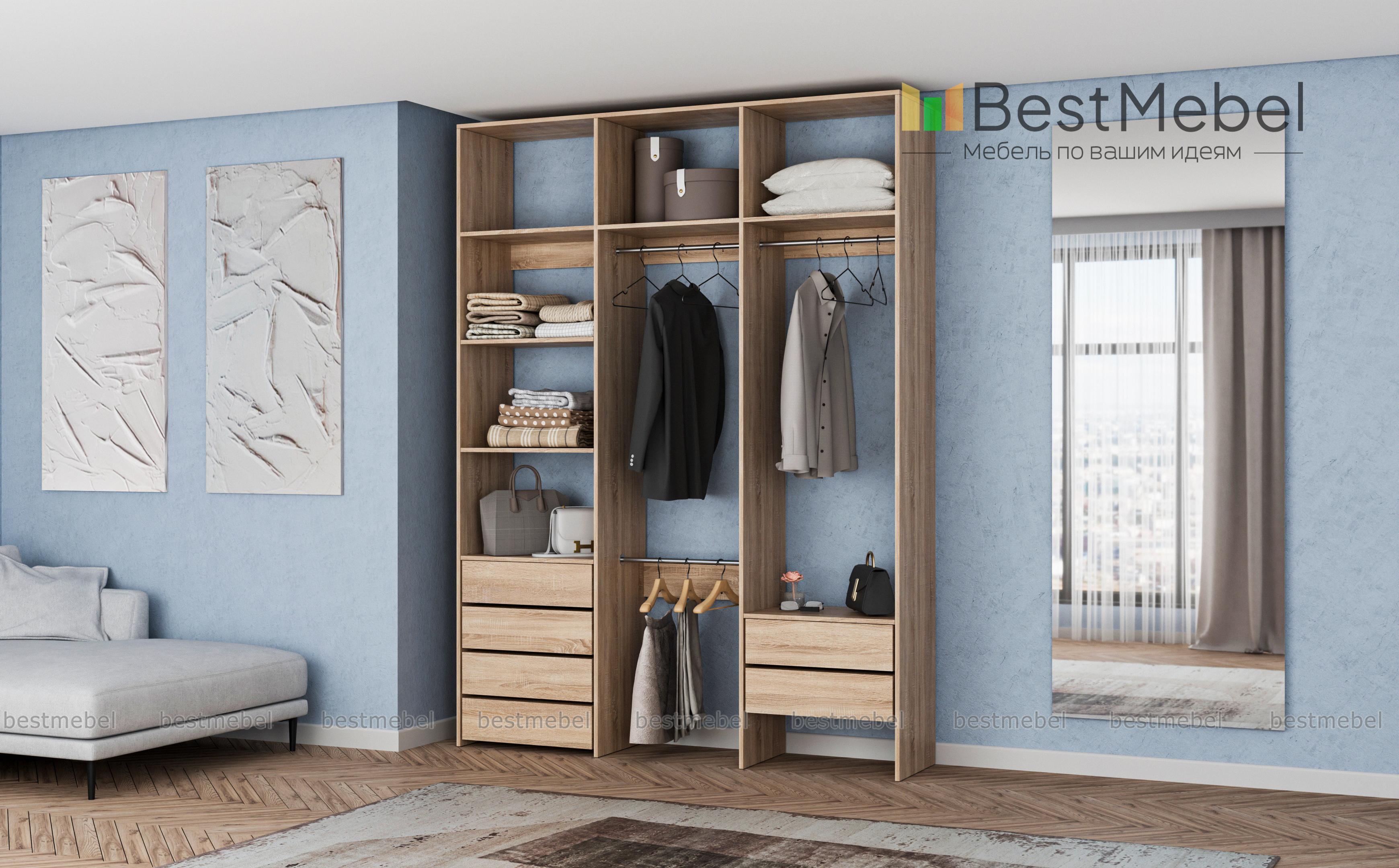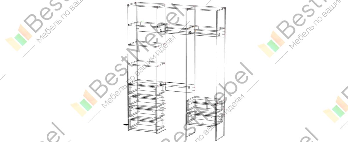 Стеллаж для одежды Мирта 13 BMS – это удобство пользования, надежность и стильный современный дизайн. На трех штангах будет аккуратно развешана одежда, а просторные полки и ящики вместят обувь, корзины и органайзеры с мелочами. Гладкие ламинированные поверхности просты в уходе, и стеллаж надолго сохранит привлекательный внешний вид. Купить стеллаж для одежды Мирта 13 BMS вы сможете на сайте нашего интернет-магазина, подобрав оптимальные размеры и цвет по каталогу.