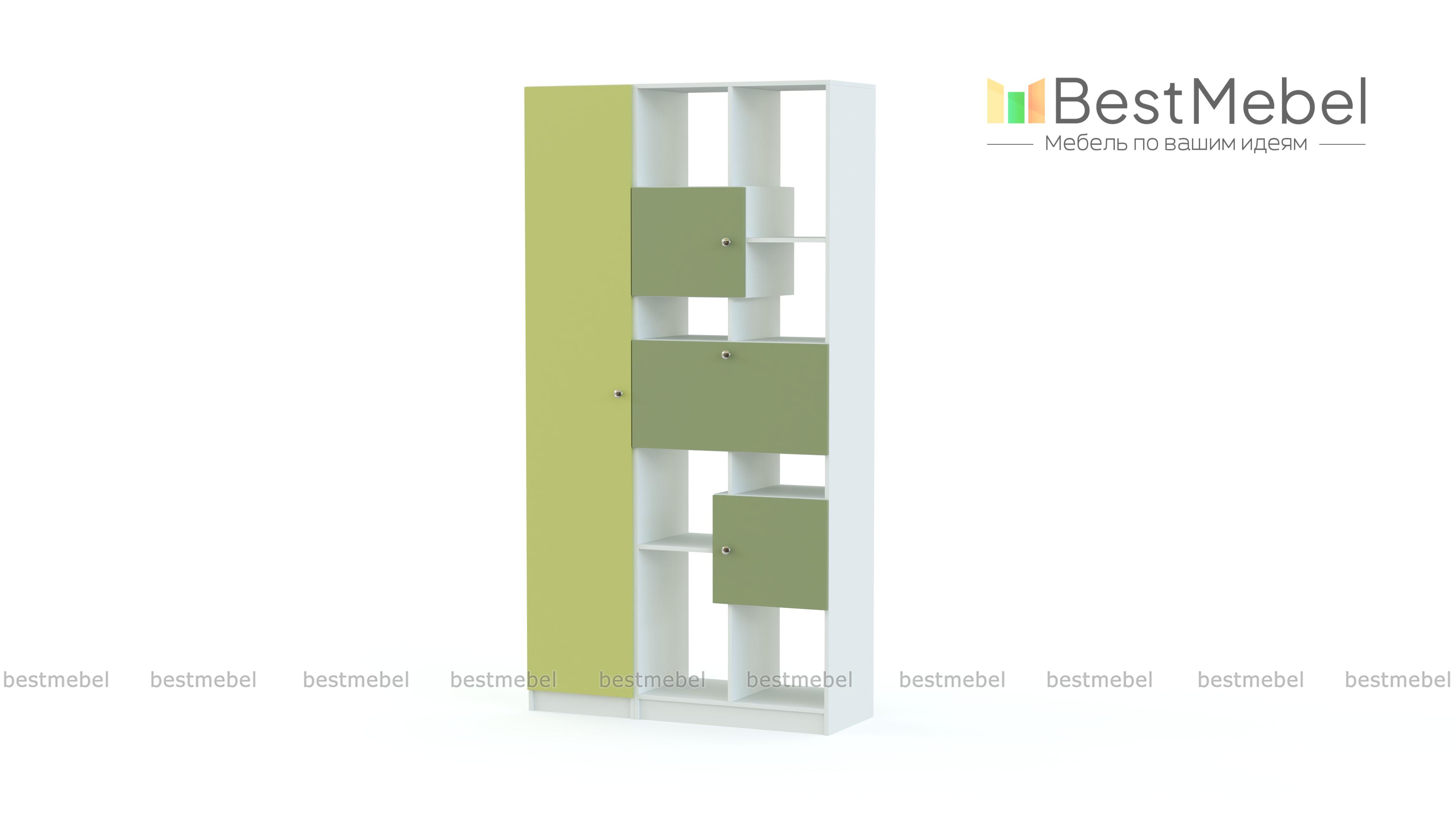 Стеллаж Флай 8 BMS скомбинирован с высоким бельевым пеналом и легко решит проблему хранения большого количества вещей – от одежды до мелочей. Стеллаж оборудован как открытыми секциями разной высоты для книг и декоративных предметов, так и глухими распашными отделениями. Сочетание корпуса древесных тонов с яркими матовыми фасадами выглядит актуально и отлично вписывается в интерьер современной городской квартиры. Купить стеллаж Флай 8 BMS приглашаем в наш интернет-магазин.