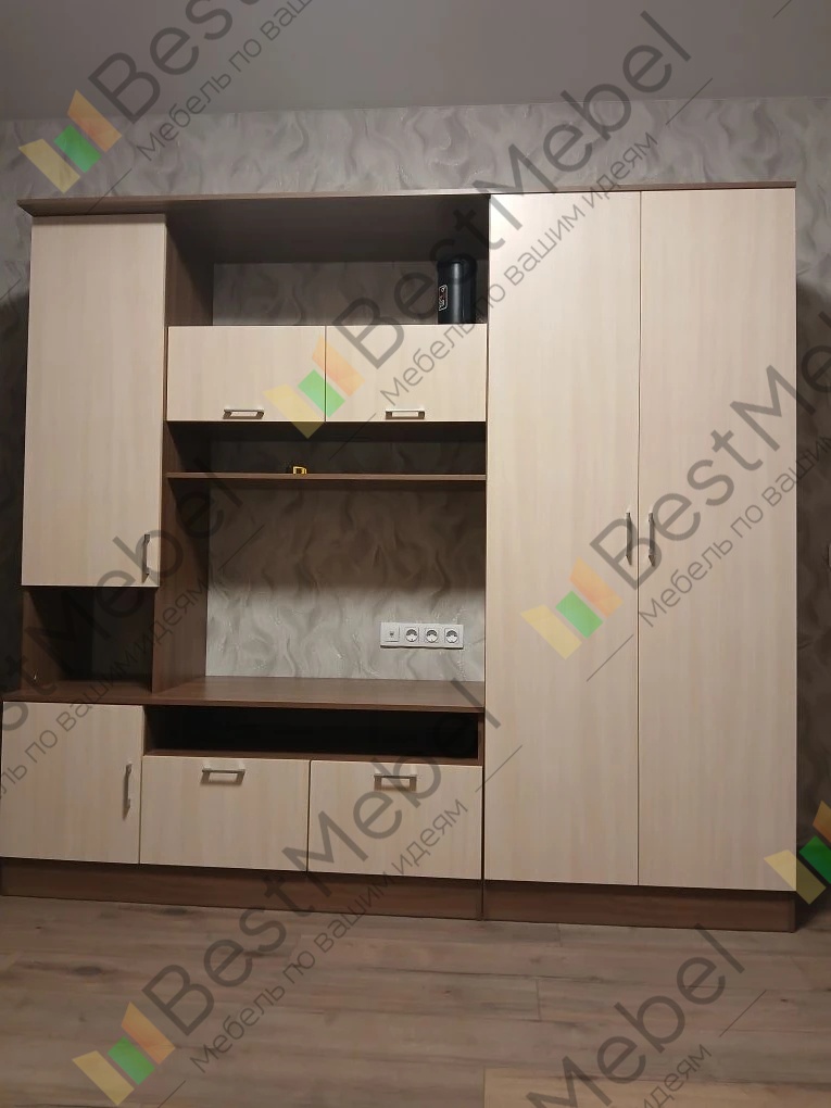 Заказ №98412 от 24.03.2018Понравилось что нет предоплаты , можно выбрать размер и большой выбор цвета. Заказ выполнен за несколько днейПо телефону продиктовал в каком место нужна ниша под ТВ ,мне сделали чётко под 40 дюймов ТВ ,на нужной высоте и длине от начала гостиной . Выполнили заказ всего за несколько дней , через день собрали . Заказал одновременно ещё и шкаф трёхдверный того же цвета и антресоль , получился комплект мебели , который сложно найти в интернет магазинах по своим размерам. Цена очень низкая , а ДСП весьма качественная.