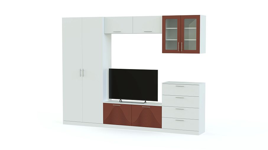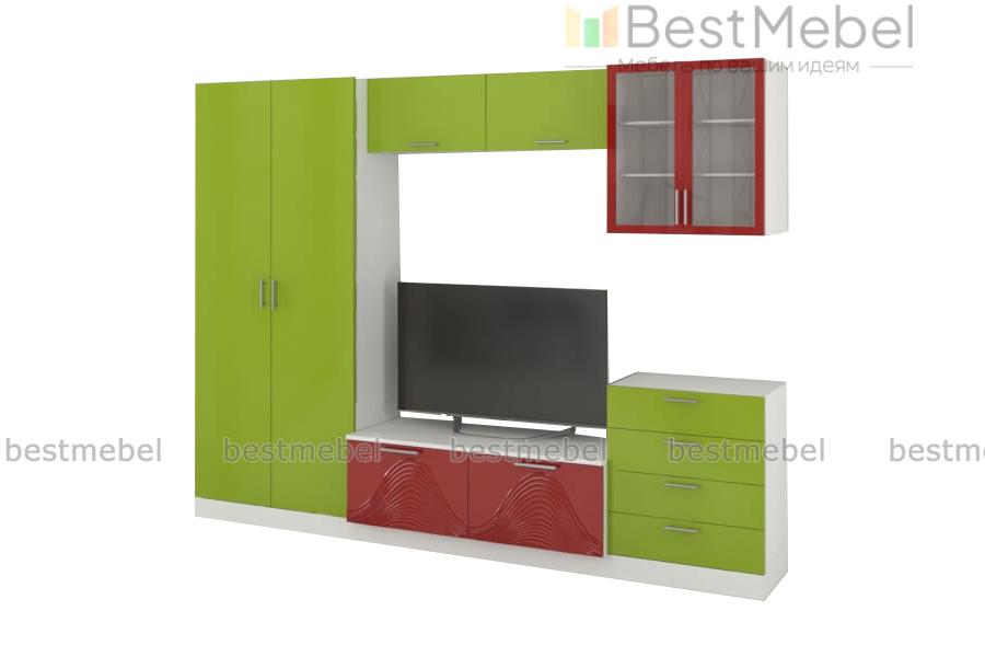 Стенка Вельвет 22 BMS – это вместительность, строгие минималистичные пропорции и свежие расцветки. Модель станет отличным выбором для создания яркого динамичного интерьера в современном стиле. Разместить все необходимое помогут практичные модули – платяной распашной шкаф, тумба под ТВ, комод с выдвижными ящиками, антресоль и навесной застекленный шкафчик. В оформлении фасадов сочетаются матовые гладкие поверхности и цветной оттенок с рельефным рисунком. Купить стенку Вельвет 22 BMS приглашаем по демократичной цене в наш интернет-магазин.
