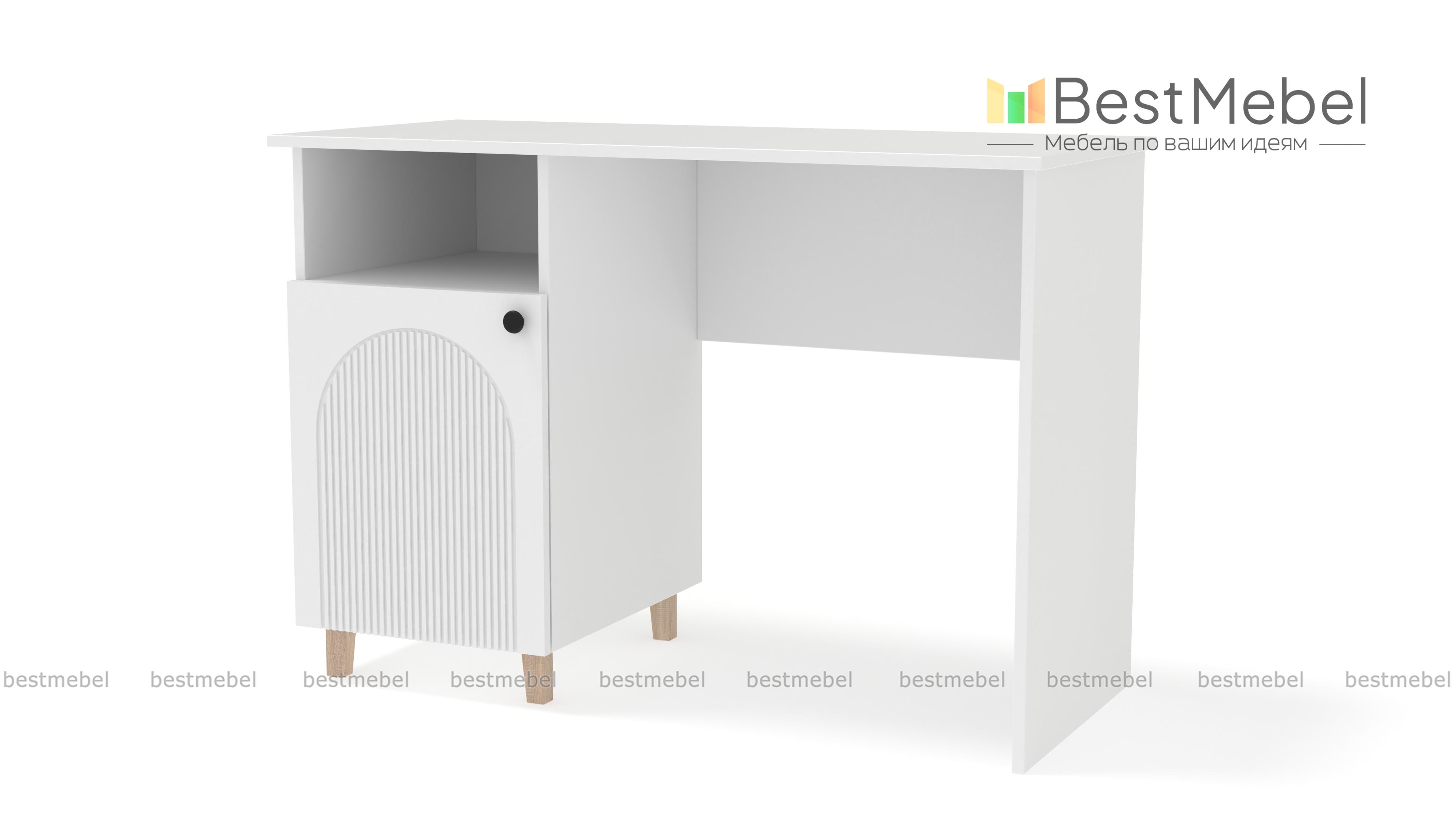 Письменный стол Рене 2 BMS поможет вам организовать комфортные условия для работы и учебы. Модель в современном дизайне с фрезерованным фасадом оборудована тумбой с высокими ножками, распашным отделением и нишей для бумаг. Широкая прямоугольная столешница удобна для размещения компьютера, работы с документами и творчества. Купить письменный стол Рене 2 BMS вы всегда сможете в нашем интернет-магазине с выбором оптимальных размеров, цвета и фурнитуры.