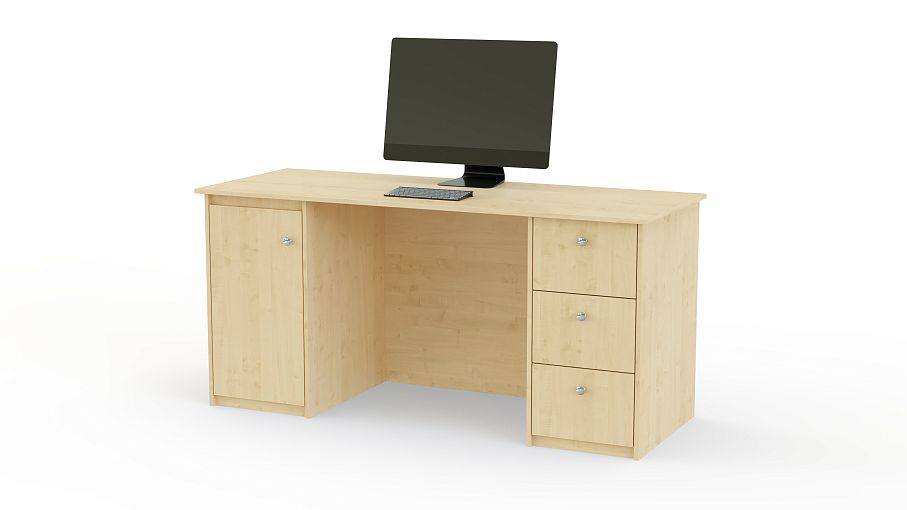Стол письменный Валенсия-2 BMS – классическая двухтумбовая модель с закрытым фасадом, удобная для письма и работы за ноутбуком. Выполненный в светлых древесных тонах, стол оборудован особенно просторной прямоугольной столешницей, распашным отделением и тумбой из трех выдвижных ящиков, удобной для хранения канцелярских мелочей. Эффектный вид модели придает фурнитура. Купить стол письменный Валенсия-2 BMS вы сможете в нашем интернет-магазине по лучшей цене.