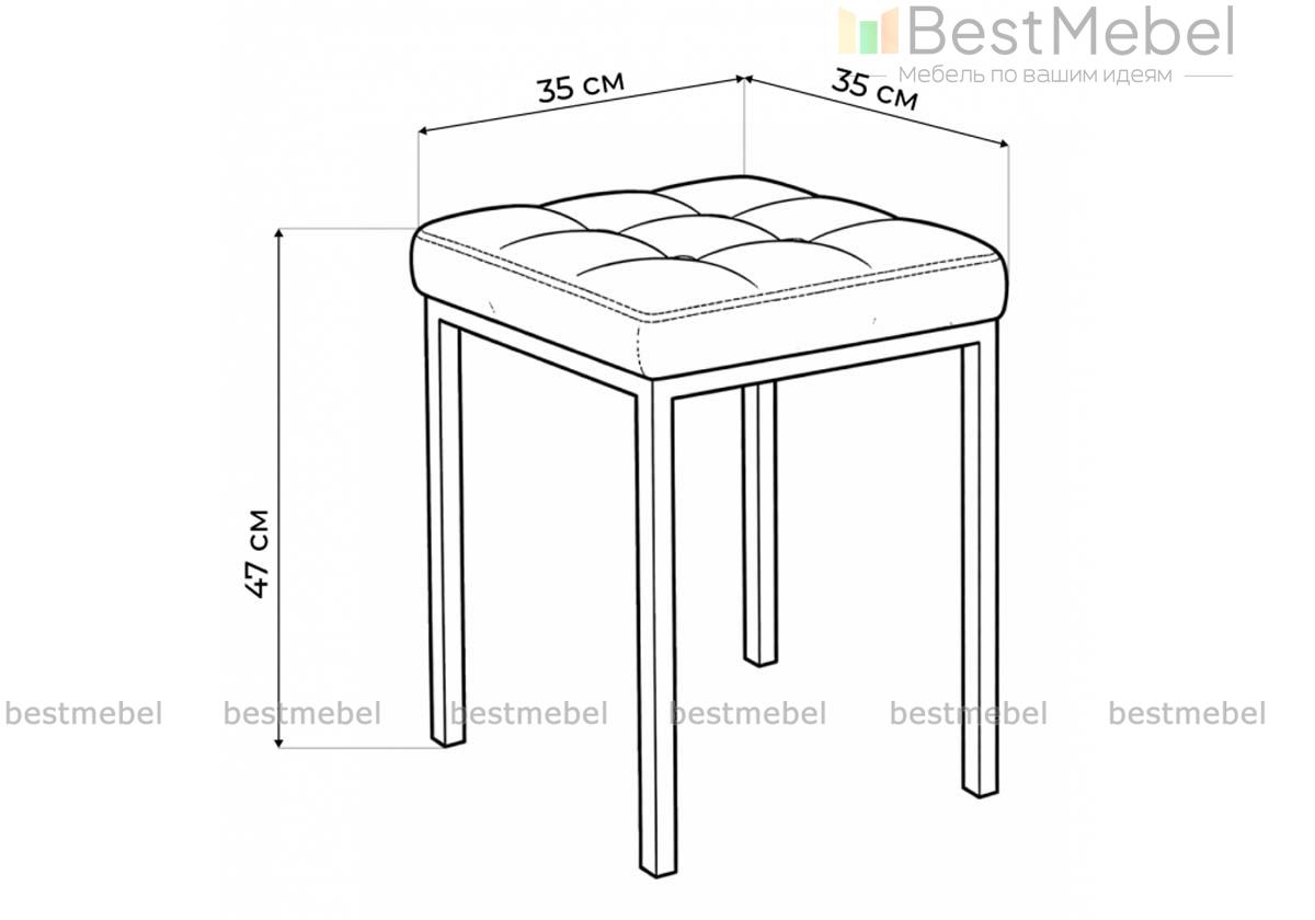 Табурет Байя выгодно отличается устойчивостью, которую обеспечивает классическая конструкция с четырьмя ножками и квадратным сиденьем. Универсальная для большинства современных интерьеров, модель выполнена на прочном металлическом каркасе с мягкой комфортной обивкой. Износостойкий материал с декоративной объемной стяжкой долговечен и прост в уходе. Купить табурет Байя с учетом оптимальных размеров вы сможете в нашем интернет-магазине.