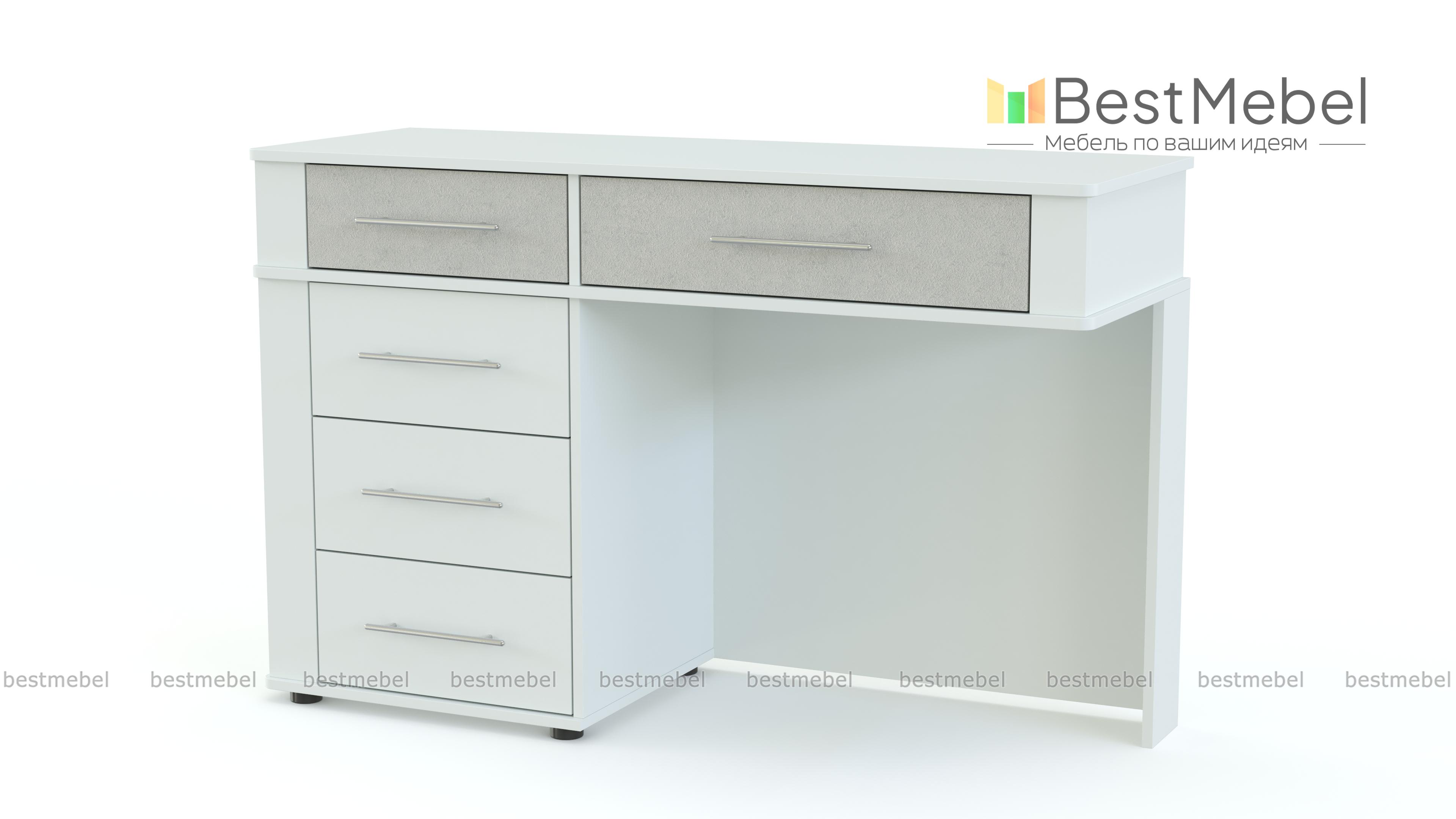 Туалетный столик Бруна BMS – это оригинальный дизайн и универсальная расцветка под массив дерева, которая гармонично впишется в большинство современных интерьеров. Модель отличается вместительностью и эргономичной формой, которые сделают уход за собой максимально комфортным. Столик оборудован просторной столешницей, двумя малыми и тремя большими выдвижными ящиками для мелочей с ручками-рейлингами, углы безопасно закруглены. Купить туалетный столик Бруна BMS для стильной и уютной спальни приглашаем по лучшей цене в наш интернет-магазин.