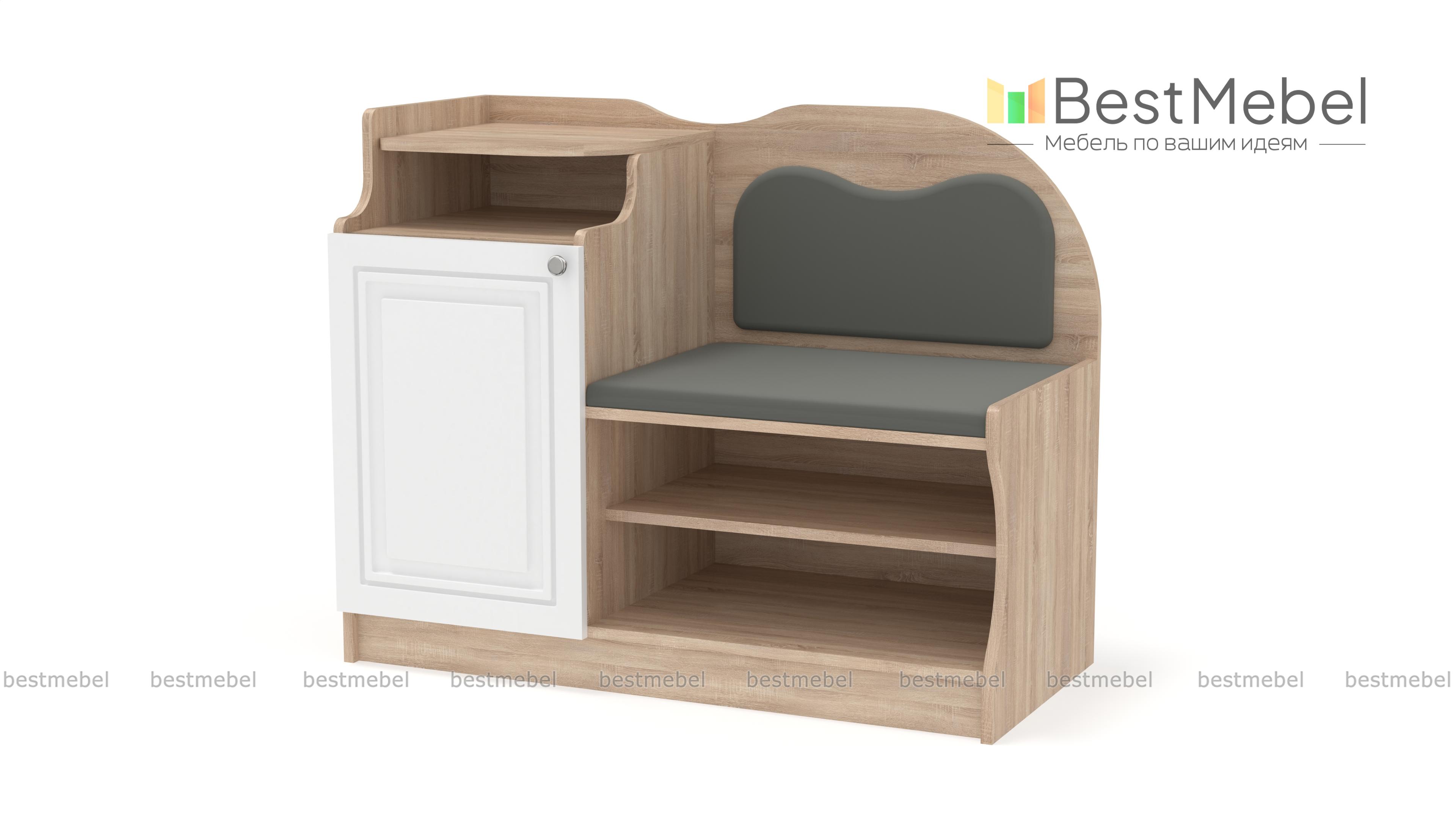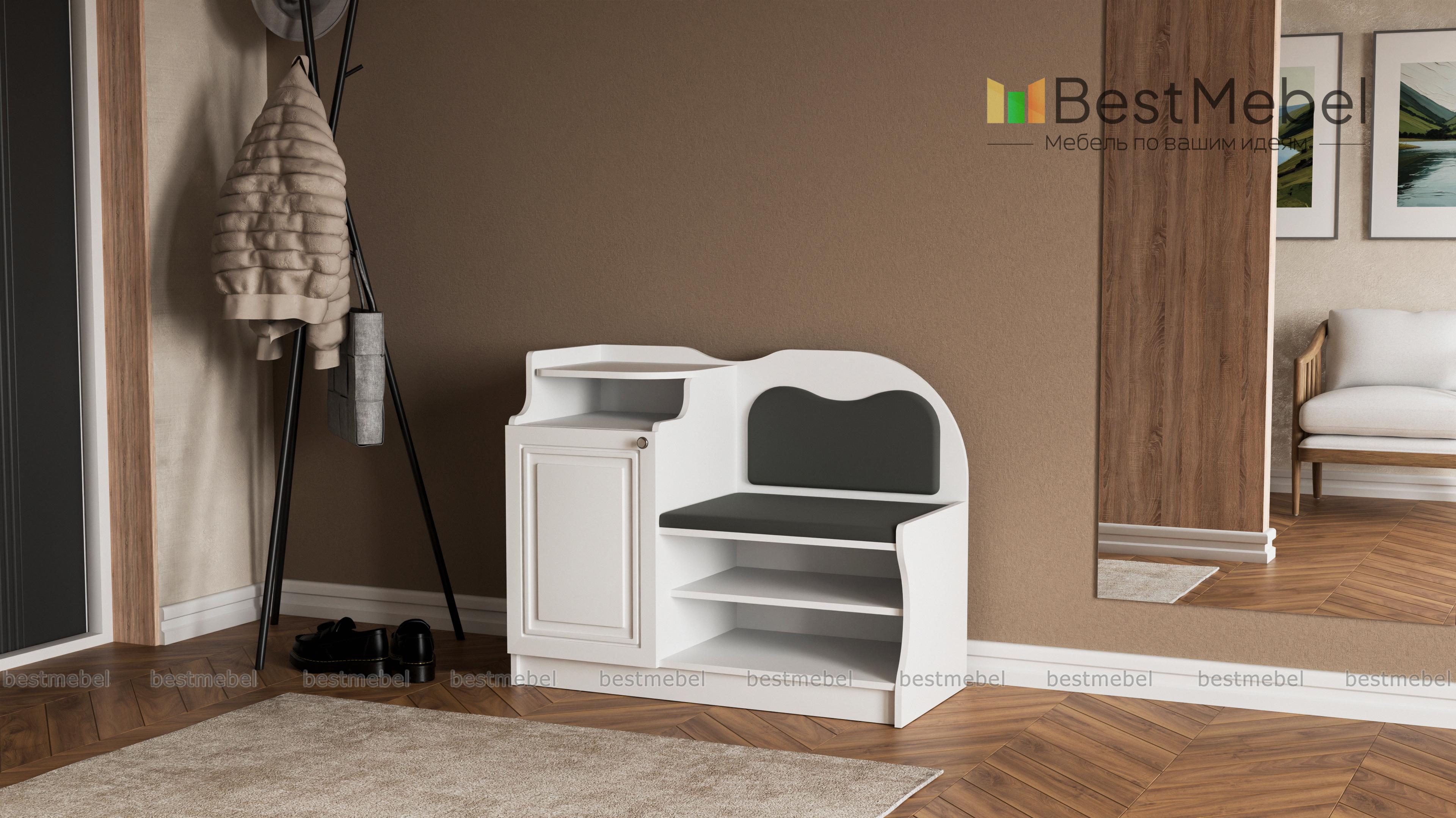 Тумба-банкетка под телефон № 1 BMS станет выбором тех, кто предпочитает классические варианты, и гармонично дополнит традиционные интерьеры. Модель в насыщенных темных тонах отличается уютным декором, сочетая фигурно вырезанные элементы и фрезеровку. Для хранения сезонной обуви предусмотрены открытые полки, а необходимые под рукой мелочи и стационарный телефон разместятся благодаря тумбе с распашным отделением и открытой полкой. Комфортное сиденье в ткани дополняет высокая спинка также с мягкой обивкой. Купить тумбу-банкетку под телефон № 1 BMS приглашаем в наш интернет-магазин.