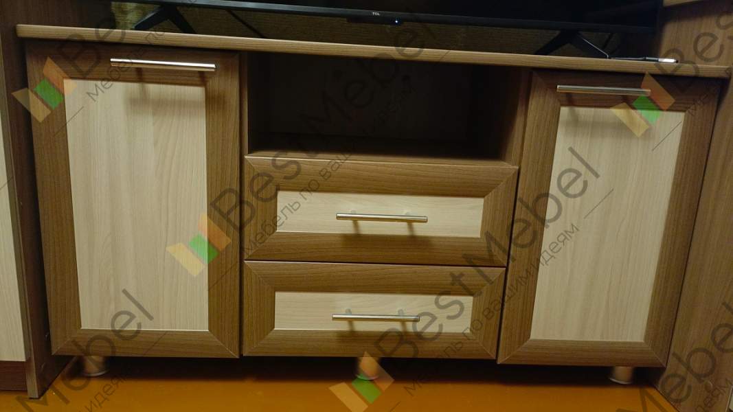 Тумба под TV Дуэт 2 BMS с рамочными фасадами выполнена в контрастных цветах. Благодаря богатой палитре оттенков можно легко подобрать подходящий именно вам вариант и вписать тумбу в классический или современный интерьер. Широкая телевизионная тумба имеет традиционную конструкцию с двумя выдвижными ящиками, нишей и расположенными по бокам распашными отделениями с полками. Купить тумбу под TV Дуэт 2 BMS по доступной цене приглашаем на сайт нашего интернет-магазина.