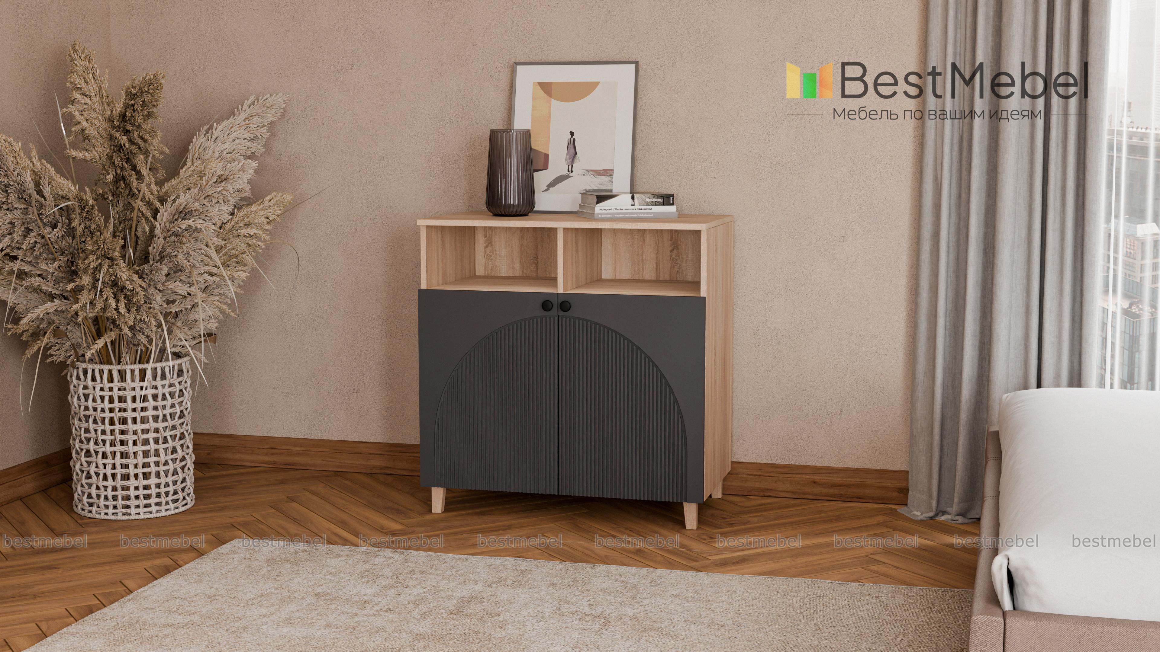 Тумба Вивьен 2 BMS совместима как с предметами коллекции, так и с другой современной мебелью. Легкая конструкция тумбы с высокими ножками сочетается с актуальными оттенками и оригинальной рифленой отделкой фасада. Закрытое отделение с двумя дверцами и разделенная перегородкой ниша прекрасно подходят для хранения книг и множества мелочей, размещения интерьерных украшений. Купить тумбу Вивьен 2 BMS приглашаем в наш интернет-магазин с выбором фурнитуры и цвета по каталогу.