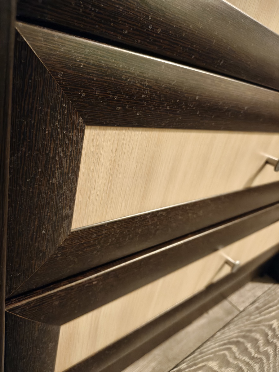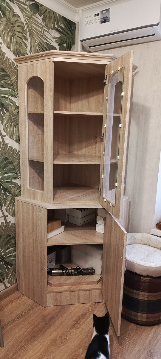 Выбрала шкаф, заказала, оплатила в личном кабинете. Мне перезвонил менеджер, и мы обговорили детали. В ходе диалога, мне понадобилось внести несколько изменений по поводу наполнения изделия, потом я ещё раз звонила и просила кое-что изменить. Разница в цене получилась в мою пользу, вернули не сразу, похоже, что про меня забыли. Все сотрудники очень терпеливые и вежливые. Ждала изделие ровно столько, сколько мне сказали при первом общении. Когда шкаф был готов, меня оповестили, что передают в доставку. Доставка была Деловыми линиями, а это лотерея. Приехал равнодушный водитель, сказал, что у нас без подъёма на этаж и выгрузил детали из машины. Когда муж забирал последнюю коробку, водитель напомнил, что подъём оплачивается на месте. Через несколько дней со мной связался сборщик, и мы договорились на удобное время. Пришёл весёлый мужчина, который собирал шкаф и подпевал своему телефону, на котором он включил музыку на время работы. К работе подошёл творчески, максимально удобно установил шкаф так, что он стоит надёжно. Выглядит вполне крепким.  Единственное, что я не разобралась, как за покрытием снаружи ухаживать.  Обычной тряпкой с водой не удалось оттереть брызги, после того, как животные отряхиваются.Хотелось бы понимания, что за покрытие используется по периметру дверей, потому что мне нужно было немножко другое. Плюс скудный выбор ручек для данной модели, из-за чего у меня в комнате этот шкаф не гармонирует с другой мебелью. В целом я довольна. При необходимости новой мебели, буду обращаться ещё.