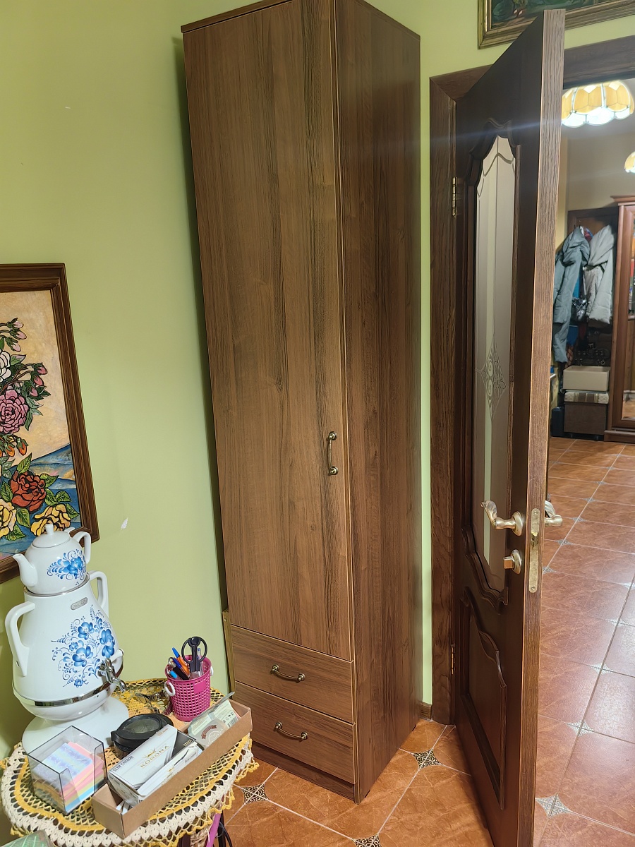Шкаф удобный, вместительный, подошел по цвету. К качеству изготовления претензий нет.