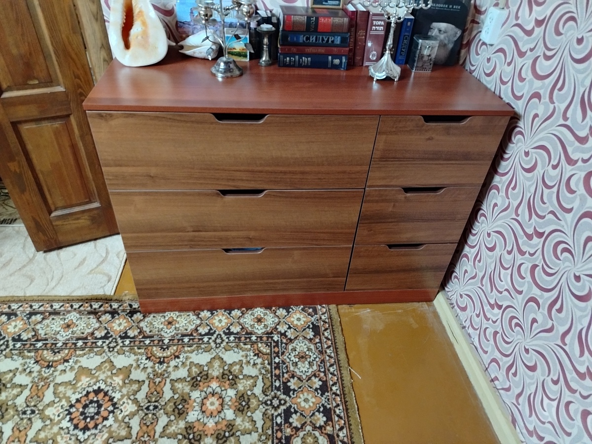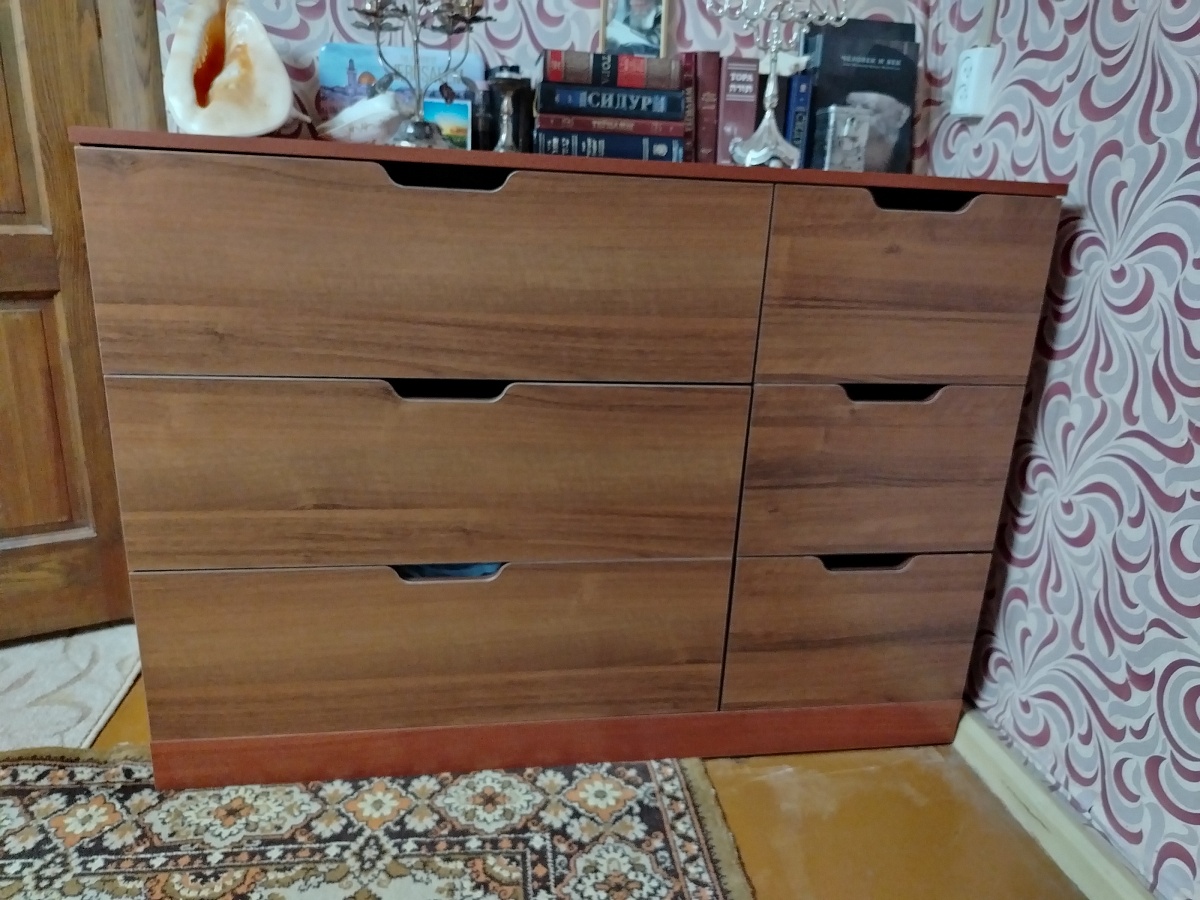 Заказ 00000867485. Приобретали комод. Нужен был длинный. Сайт очень удобный, можно выбрать и цвета и размеры. Понравилось, что есть возможность разного цвета корпуса и фасадов. Изготовили очень быстро, быстрее, чем по договорённости. Доставка вовремя. Качество хорошее, каждая деталь маркирована, легко собирается. Мы всем довольны, спасибо.