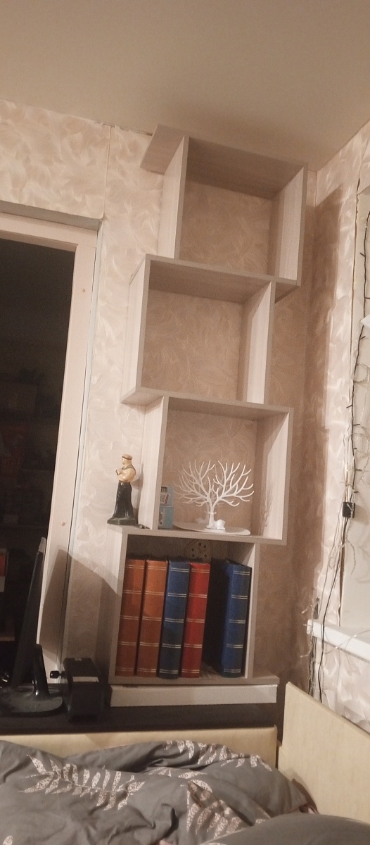 Полки Дамбо понравились, дизайн оригинальный. Немного погорячился, перегрузил полку книгами и ее немного повело (на фото заметно). Пришлось подкреплять дополнительными уголками. Вторую полку расположил вертикально (на втором фото).Заказ № 1049661 от 02.08.2024.