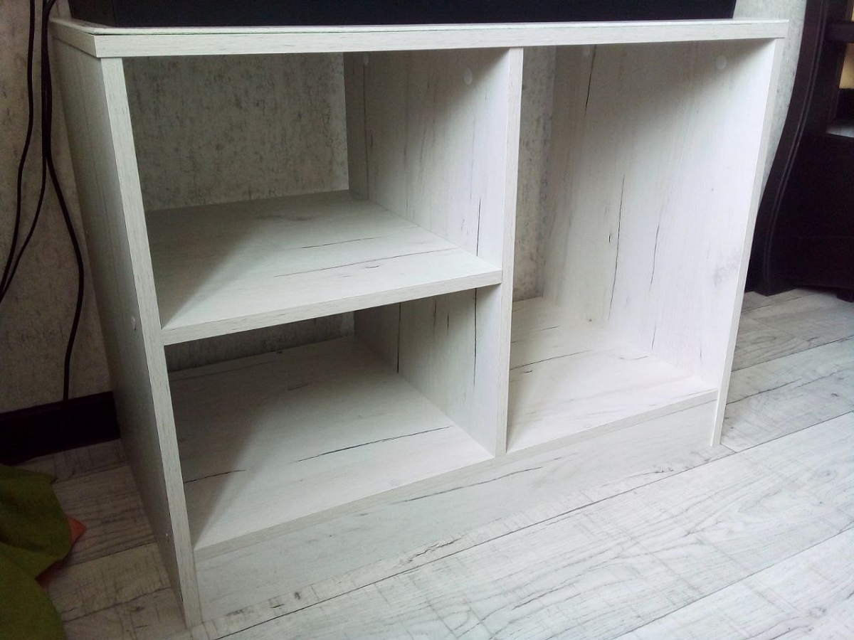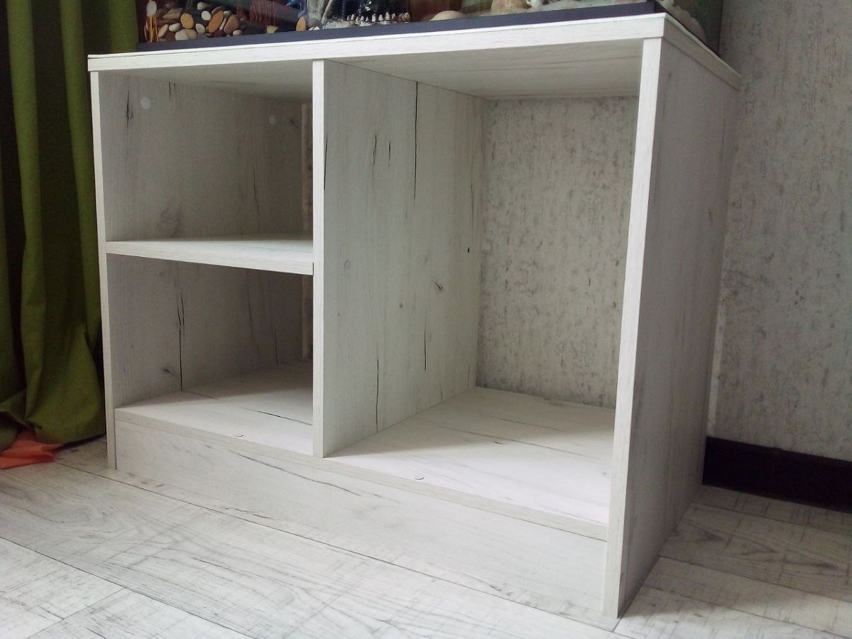Заказ 00000681974 (996899), "Обувница Нино 22 BMS". Приобрела обувницу, но использую не по назначению. Очень нужна была крепкая устойчивая тумба для 100-литрового аквариума. Ранее уже приобретала мебель с похожей конструкцией, поэтому была уверена, что эта модель со своей задачей справится. И я не ошиблась. Конструкция крайне простая и лаконичная: без задней стенки, без дверей, очень устойчивая. Три открытые полки достаточно вместительны. Размер и цвет выбрала по своему усмотрению. Качество хорошее, без сколов и царапин. Вся необходимая фурнитура для сборки в комплекте. Цена была в три раза дешевле, чем я расчитывала для этих целей, а с учетом накопленных бонусов оплатила половину. Доставили через 10 дней. Не могу не упомянуть бесплатную доставку, что тоже очень радует. Сборка такая простая, что и ребенок справится. Покупкой довольна на все 100%.