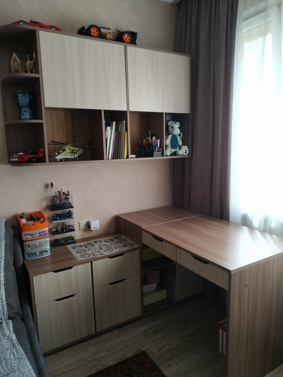 Заказывали подобный стол с индивидуальными параметрами. Плюс полка навесная. Остались очень довольны и качеством и ценой и сроками исполнения. Ранее заказывала 2 шкафа в прихожую. Полностью воплотили мои задумки и хотелки, решили все возникшие трудности, поэтому и обратилась второй раз. С этим заказом все прошло гладко, собрали сразу без довозов. Сборщикам отдельное спасибо.