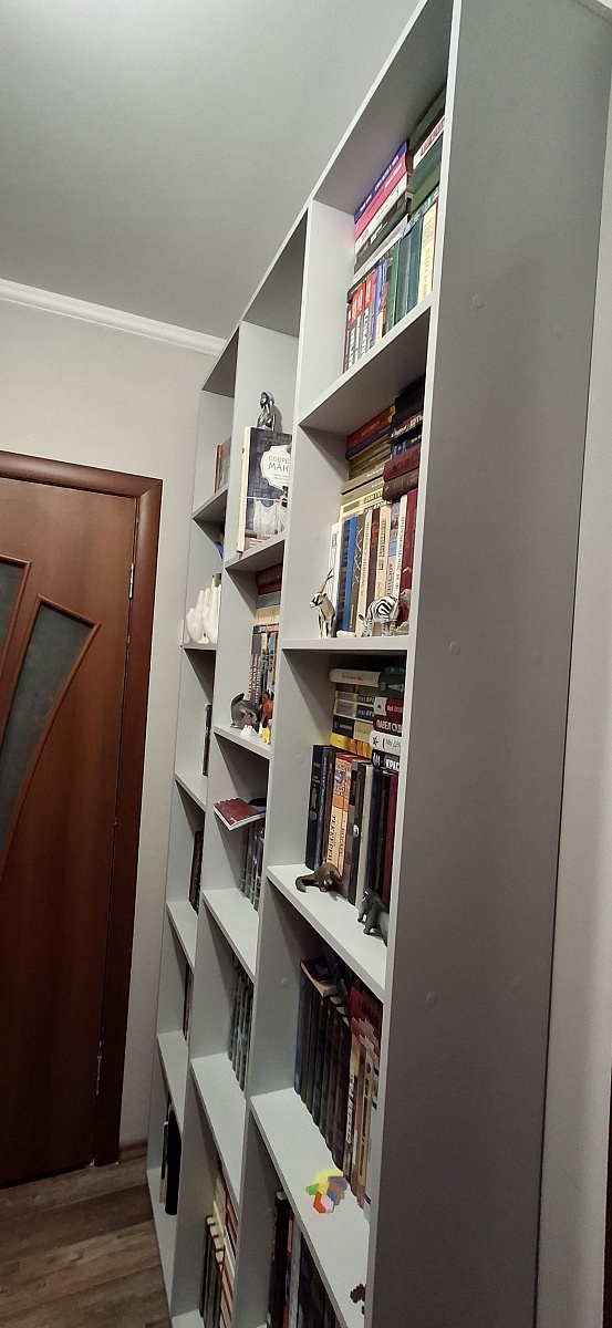 Заказ 00000201823, изделие Стеллаж Эльбрус-3 BMS (1268х2350х220).Нужен был вместительный и не занимающий много места стеллаж. Стеллаж Эльбрус именно такой и оказался. Поместилось много книг, и места в коридоре он занял минимум.Вписался по цвету идеально.Изготовлен был по моим размерам, сроки поставки были согласованы. Привезли полный комплект без брака. Покупкой остались довольны.
