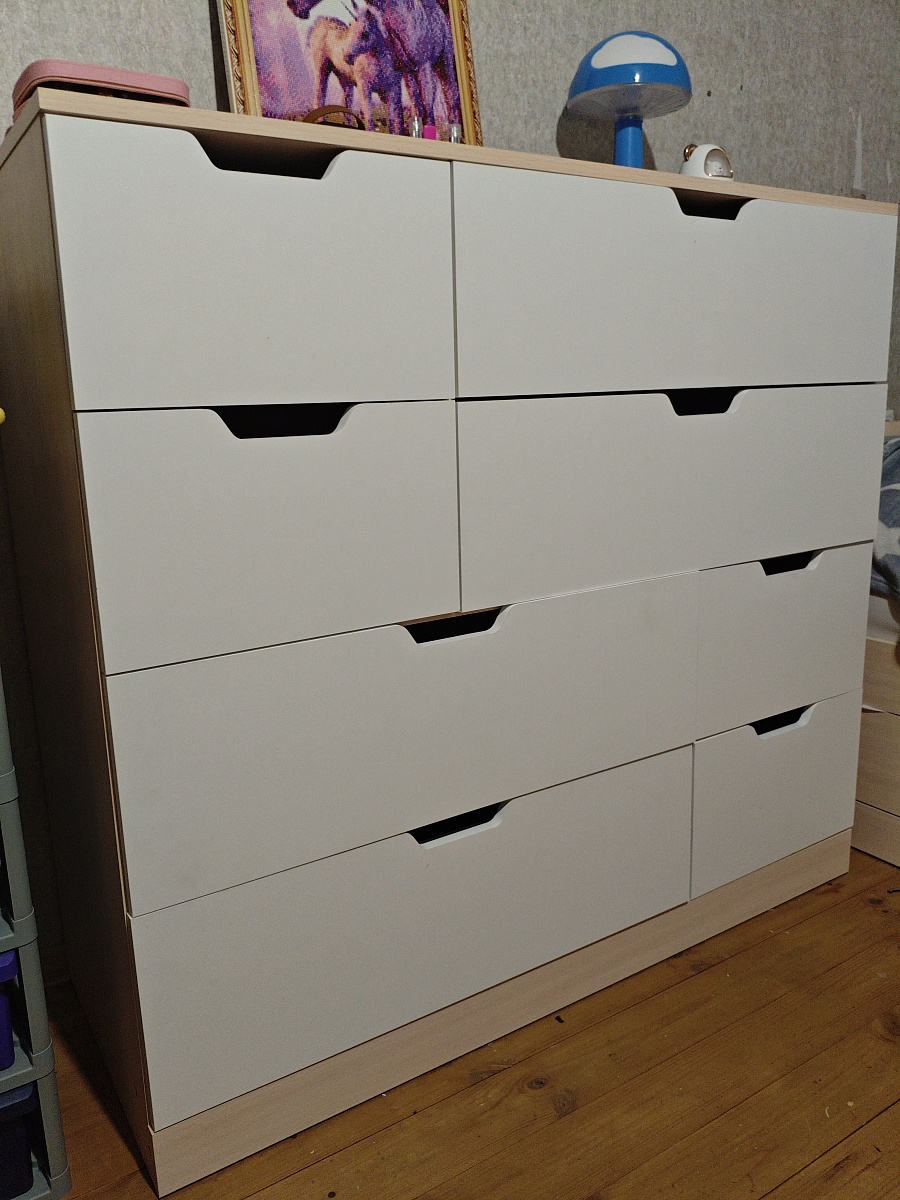 Заказ 00000197746. Заказывали комод фиеста BMS по индивидуальным размерам, так как место для мебели было весьма ограничено. На следующий день уже позвонил вежливый представитель магазина, ответил на все вопросы и подтвердил заказ. А ещё через день комод в собранном виде начал радовать нас своим присутствием в доме. Собирали комод сами, сложностей в сборке не возникло. Товаром очень довольны!