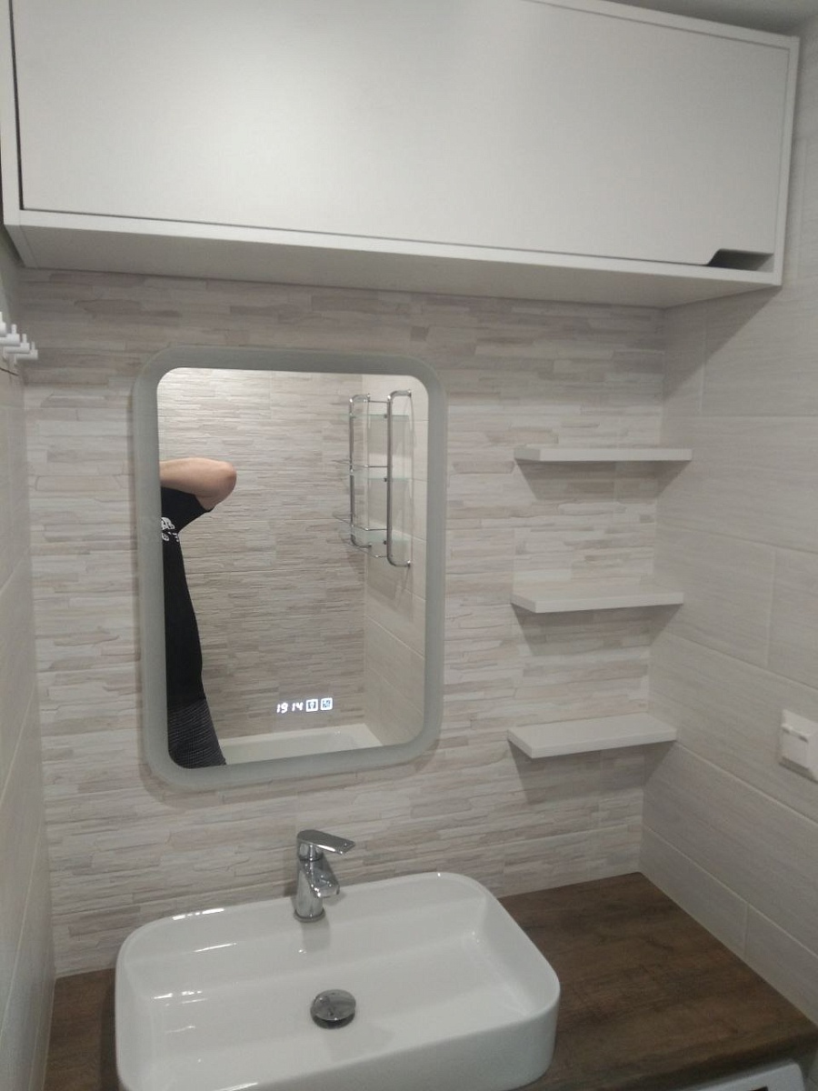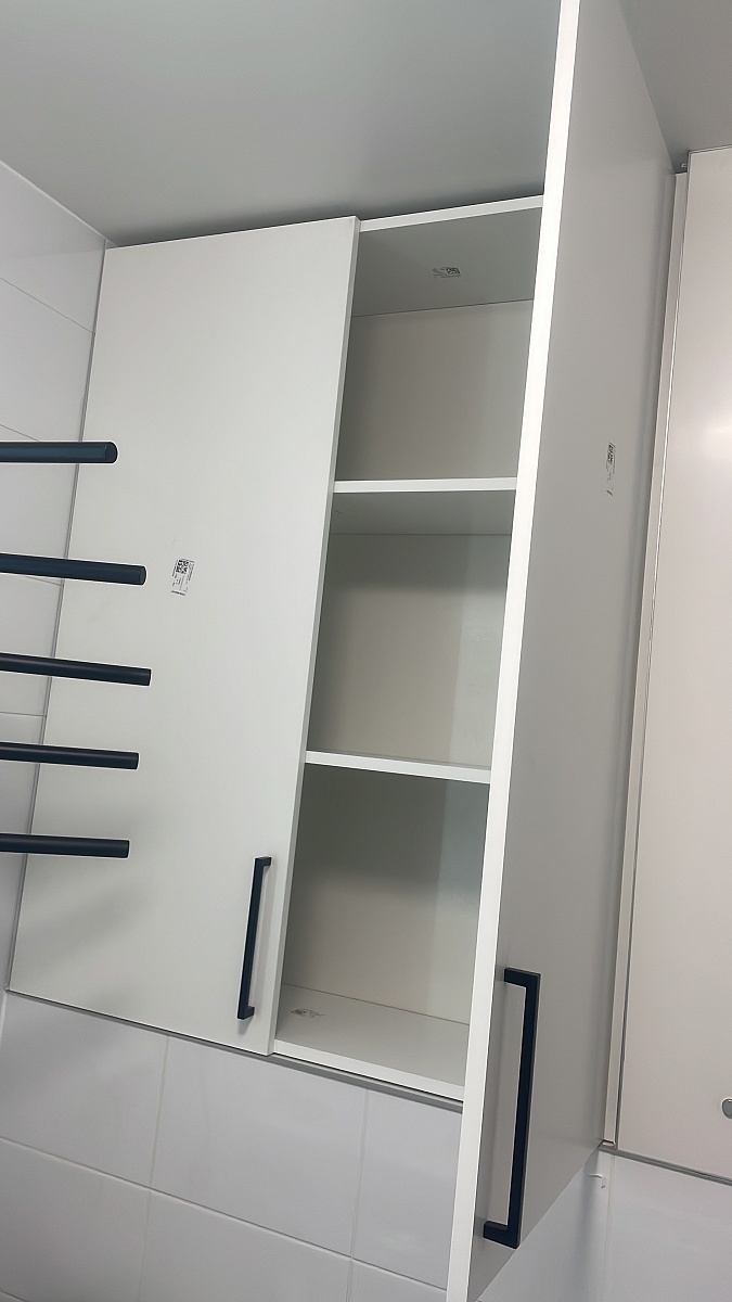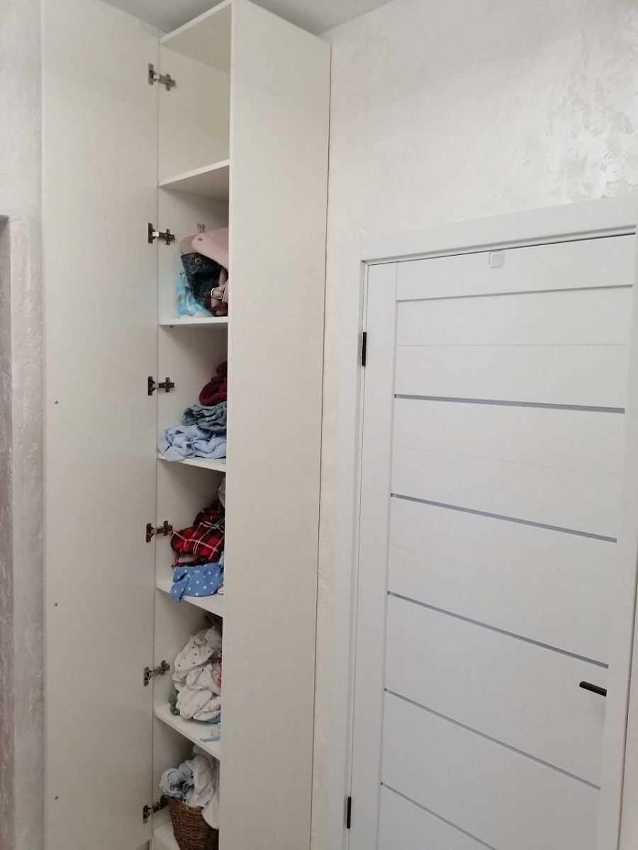 Заказ №1170941Заказала шкаф белый, в нишу в ванной. Дом ПИКовский. Размер 890-1150-300. Внутри 3 полки. Покрытие внешнее матовое белое. Шкаф большой вместительный. Прикрепили изнутри уголками к стене. Дверки брала без доводчика , пожалела , с доводчиками УДОБНЕЕ! Хороший шкафчик