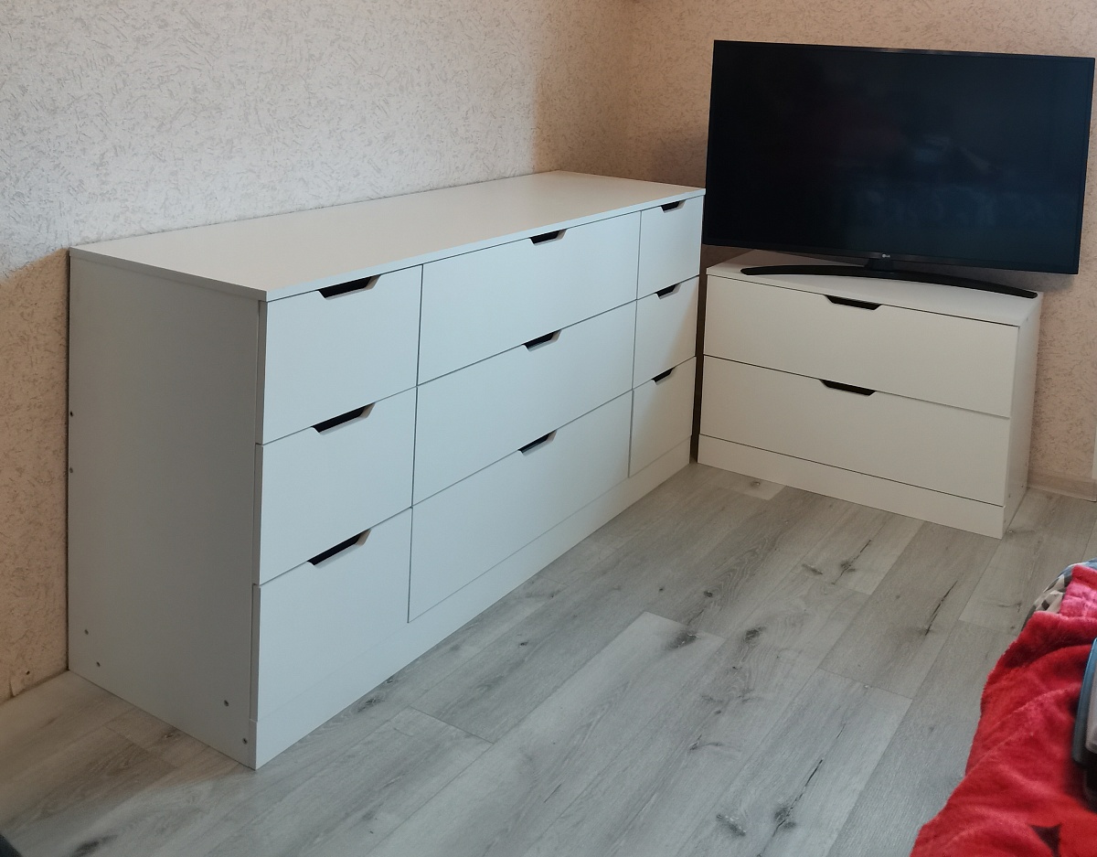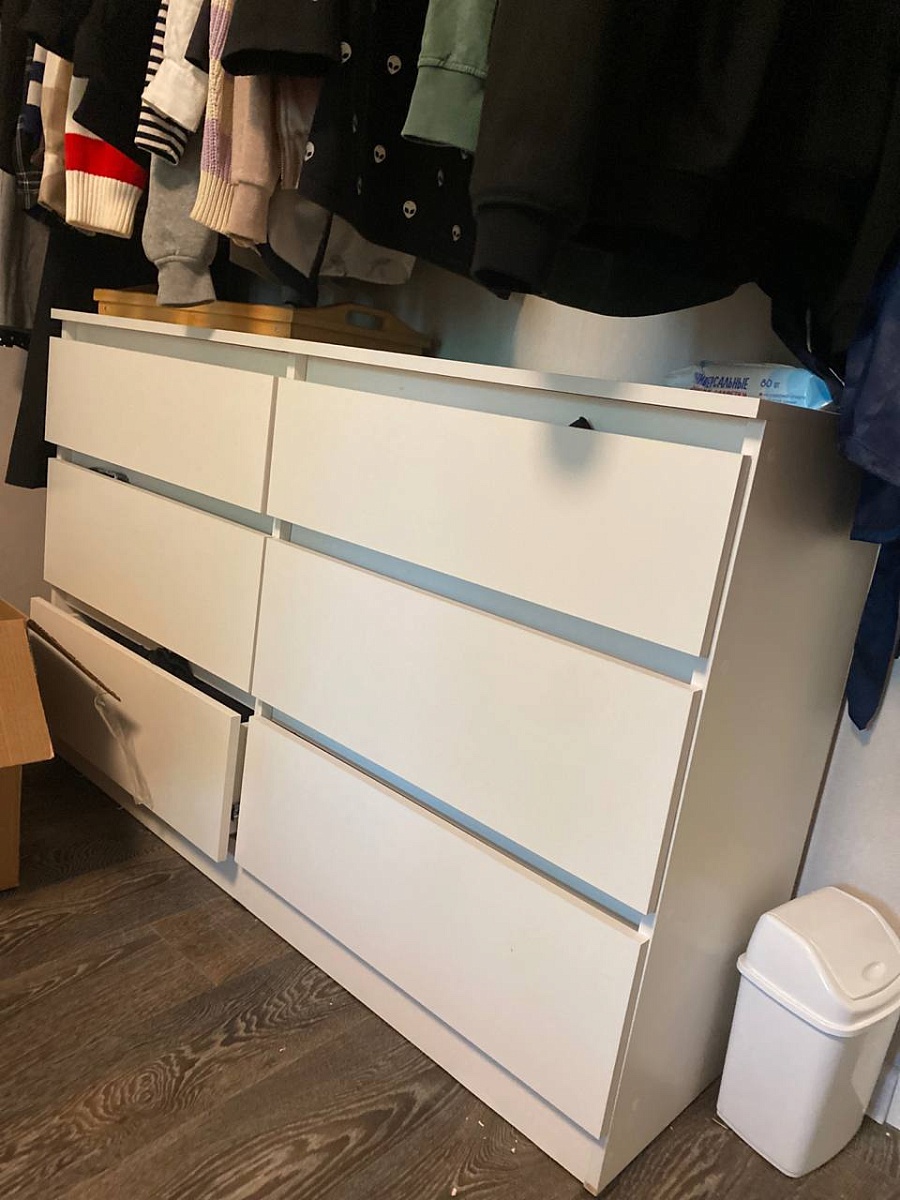 Заказ 00000972134 Комод Нордли Nordli 1. Очень удобно, что можно заказать по нужным тебе параметрам: цвет, размеры изделия, фурнитура. Затем позвонил менеджер, обсудили все детали. Были даны, как я считаю, нужные рекомендации по направляющим. Доставили быстро. Всё хорошо упаковано. Собирали сами. Инструкция по сборке сделана не очень удобно: одно большое готовое изделие с пронумероваными деталями (на самих деталях  цифры наклеены👍), если бы было пошагово - было бы🔥.  По качеству сделано добротно. Конструкция тоже продумана хорошо, не хлябает, не шатается. Ящики большие, вместительные. Вообщем всё понравилось. Фирму рекомендую.