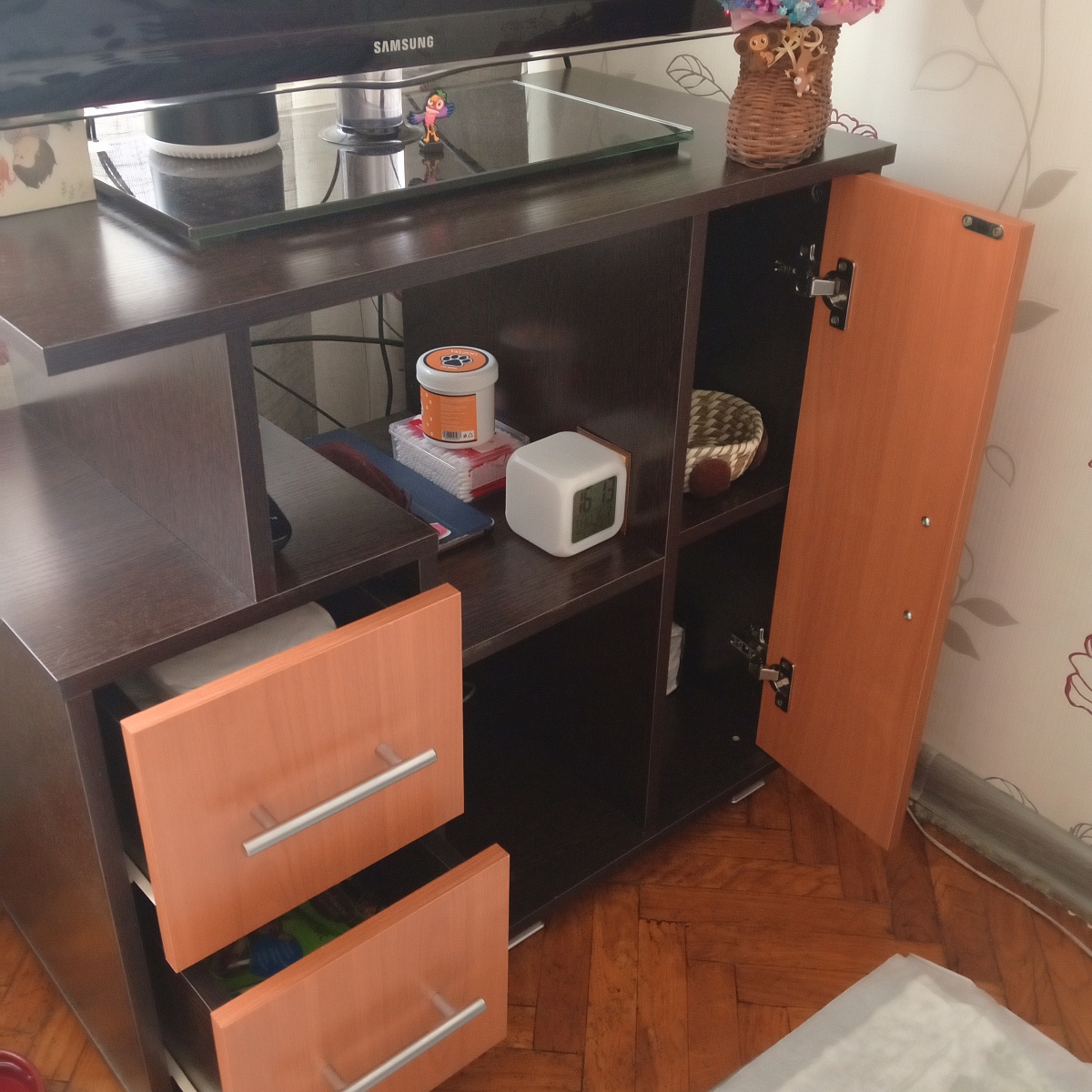 Комод понравился! Сделан по моим размерам (ширина 58, глубина 25, высота 90 см). Комод вписался в интерьер хорошо. Если придираться, то мне не хватило ширины дверцы, чтобы не видно было щелей. И присутствуют потёртости на кромке в местах сгиба. А в остальном я довольна. Особенно ценой. В других магазинах, если заказывать по индивидуальным размерам, всё намного дороже.