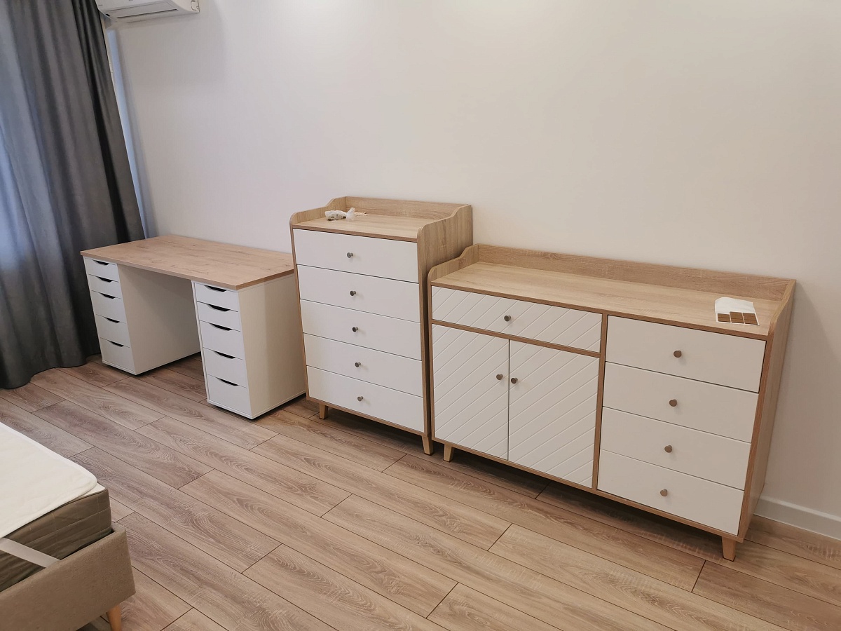 По опыту с компьютерным столом знал, что сборку надо начинать с получения цветной схемы, т.к. с приложенным чертежом ничего не получится. Отдельная история - это доставка, где экспедитор не знает количество упаковок, однако все прошло гладко.В итоге я разложил все детали по двум отдельным кучкам, соответствующие каждому комоду. Выяснилось, что даже на цветной схеме не указано 3 позиций, пришлось обращаться в гарантийный отдел. Собрал довольно быстро, благо есть опыт сборки мебели. В целом комоды понравились, есть конечно некоторые недочёты. Кстати, для ножек (которых 9) нет подпятников, чтобы не царапать пол